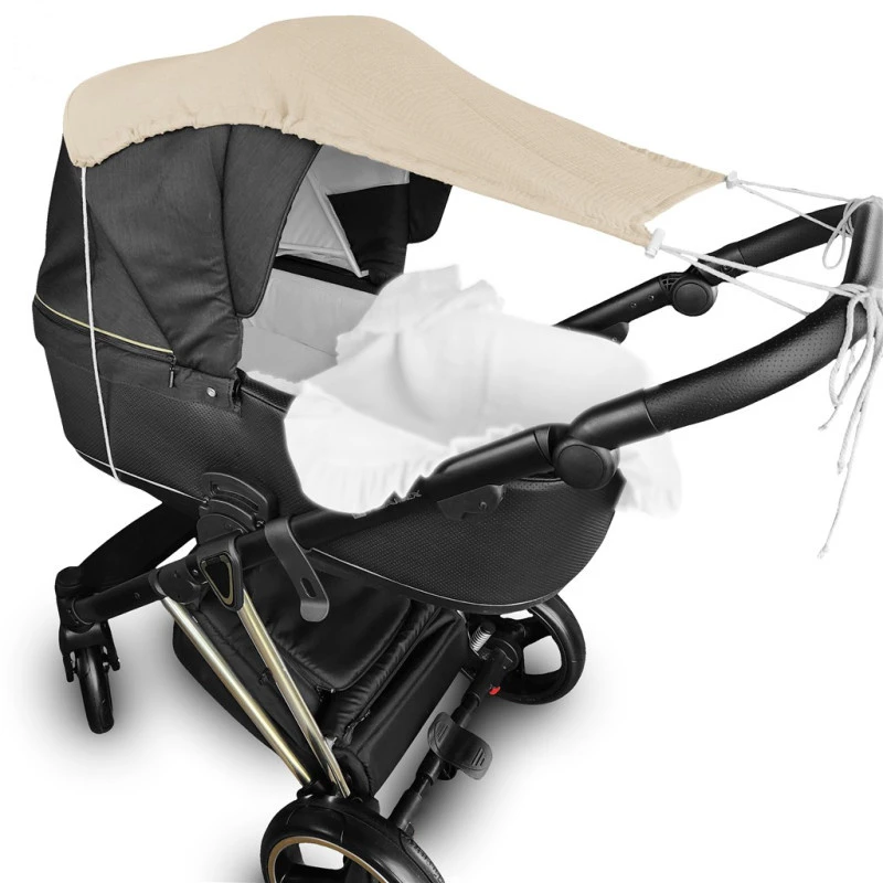 Hlavní výhody: Univerzální velikost – pasuje na většinu sportovních i hlubokých kočárků. Nastavitelný sklon stříšky – díky šňůrkám a stoperům.