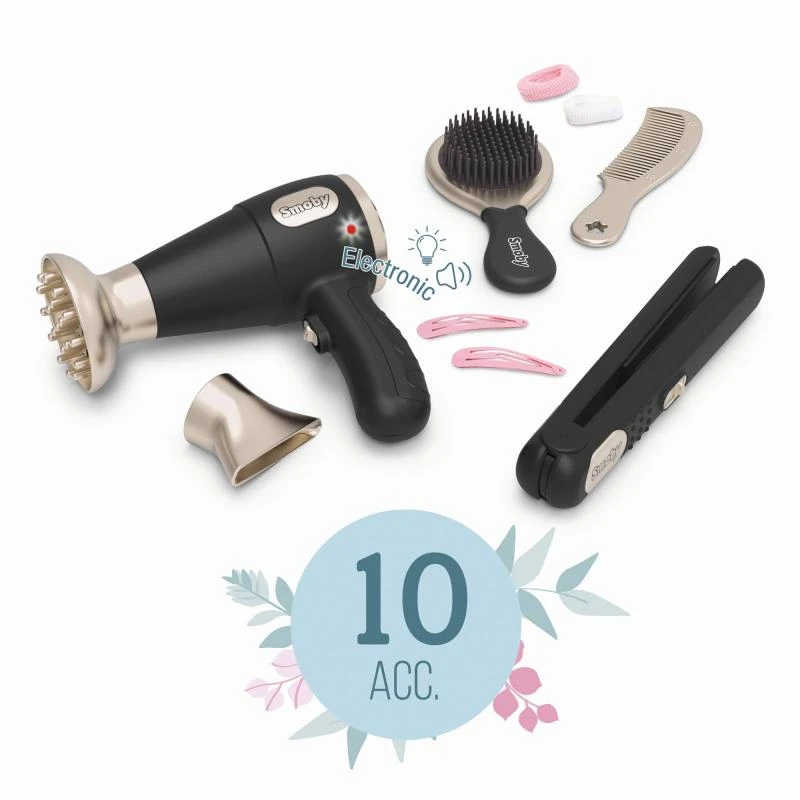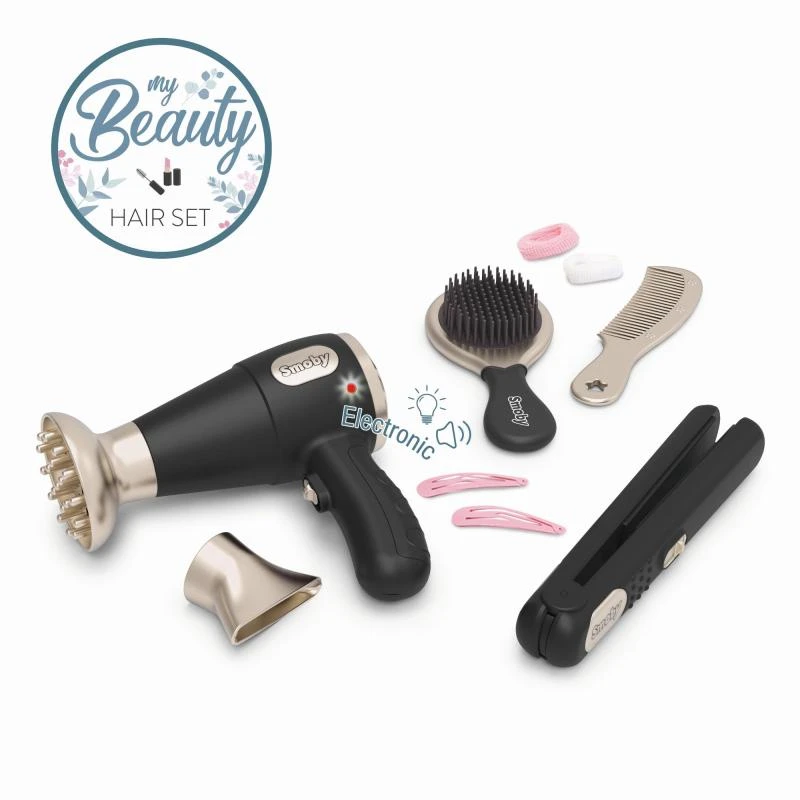 Staň se pravou kadeřnicí s kadeřnickou sadou My Beauty s fénem a příslušenstvím! Tato interaktivní sada obsahuje vše, co je potřeba k dokonalému účesu – fén se světelnou a zvukovou funkcí, žehličku na vlasy, kartáč, hřeben, sponky a gumičky do vlasů.