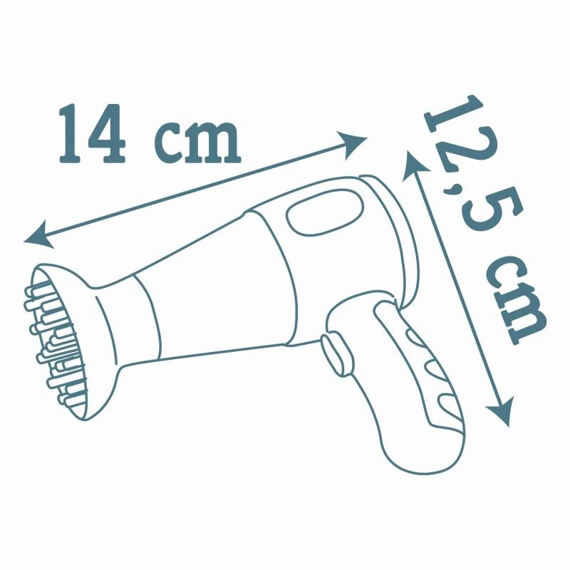 Fén po stisknutí tlačítka vydává realistický zvuk a rozsvítí se kontrolka, stejně jako u skutečného přístroje. Má 2 vyměnitelné nástavce a rozměry přibližně 14 × 2,5 cm. Veškeré příslušenství je detailně a realisticky zpracováno, takže hra působí jako opravdové kadeřnické studio.