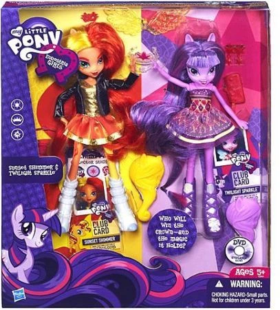 Zázračné zrcadlo změnilo poníky My Little Pony na krásné dívky Equestria Girls! Znáte souboj dobra a zla z pohádek? Teď ho můžete zažít s panenkami Equestria Girls. Jedině v tomto dvojbalení můžete získat panenku Sunset Shimmer, která je na straně zla. Balení také obsahuje panenku Twilight Sparkle s nádhernou korunkou, která je na straně dobra. Která vyhraje?