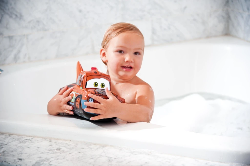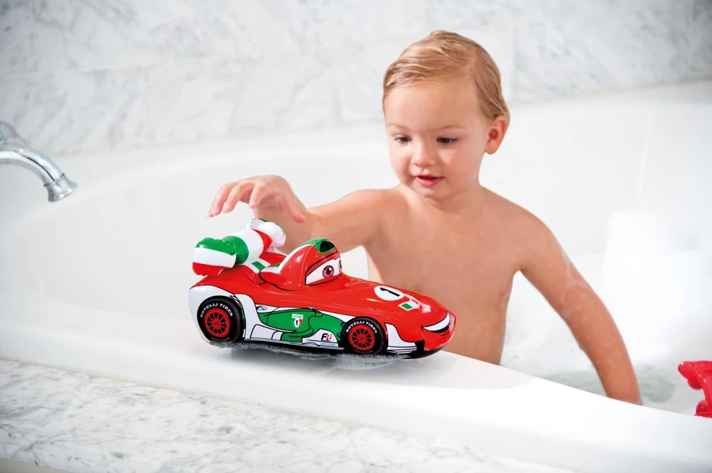 Nafukovací autíčko v designu Cars. Ideální na hraní ve vaně, v bazénku i v postýlce. Na výběr ze dvou variant: Tow Mater 33×19 cm, Francesco 30×18 cm. Opravná záplata přiložena.