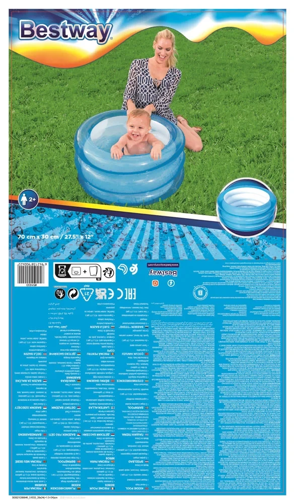 Bazének je tvořen třemi nafukovacími kruhy, které zároveň slouží jako opora při sezení. Měkká nafukovací podlaha zajišťuje maximální pohodlí během hry. Vyroben je z odolného a bezpečného vinylu a vybaven bezpečnostními ventily pro snadné nafukování i vyfukování.