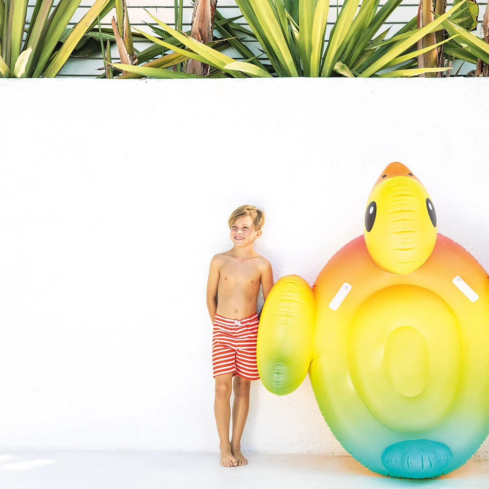 Veselý design s výraznými barvami a realistickými detaily dodává kačence hravý vzhled, díky kterému bude nepřehlédnutelná. Velkorysé rozměry zároveň poskytují dostatek prostoru pro pohodlné sezení i relaxaci.