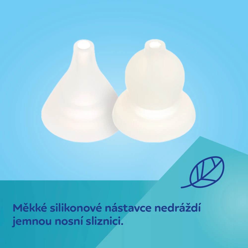 Měkký nástavec s úzkou koncovkou, kterou lze použít pro malé děti nebo tekutý hlen, a širší koncovkou určenou pro větší nosíky nebo pro použití s hustým hlenem. Náhradní nástavce jsou vyrobeny z měkkého a bezpečného silikonu, chrání nosní sliznici a zabraňují jejímu poškození náhlými pohyby dítěte při odstraňování hlenu.