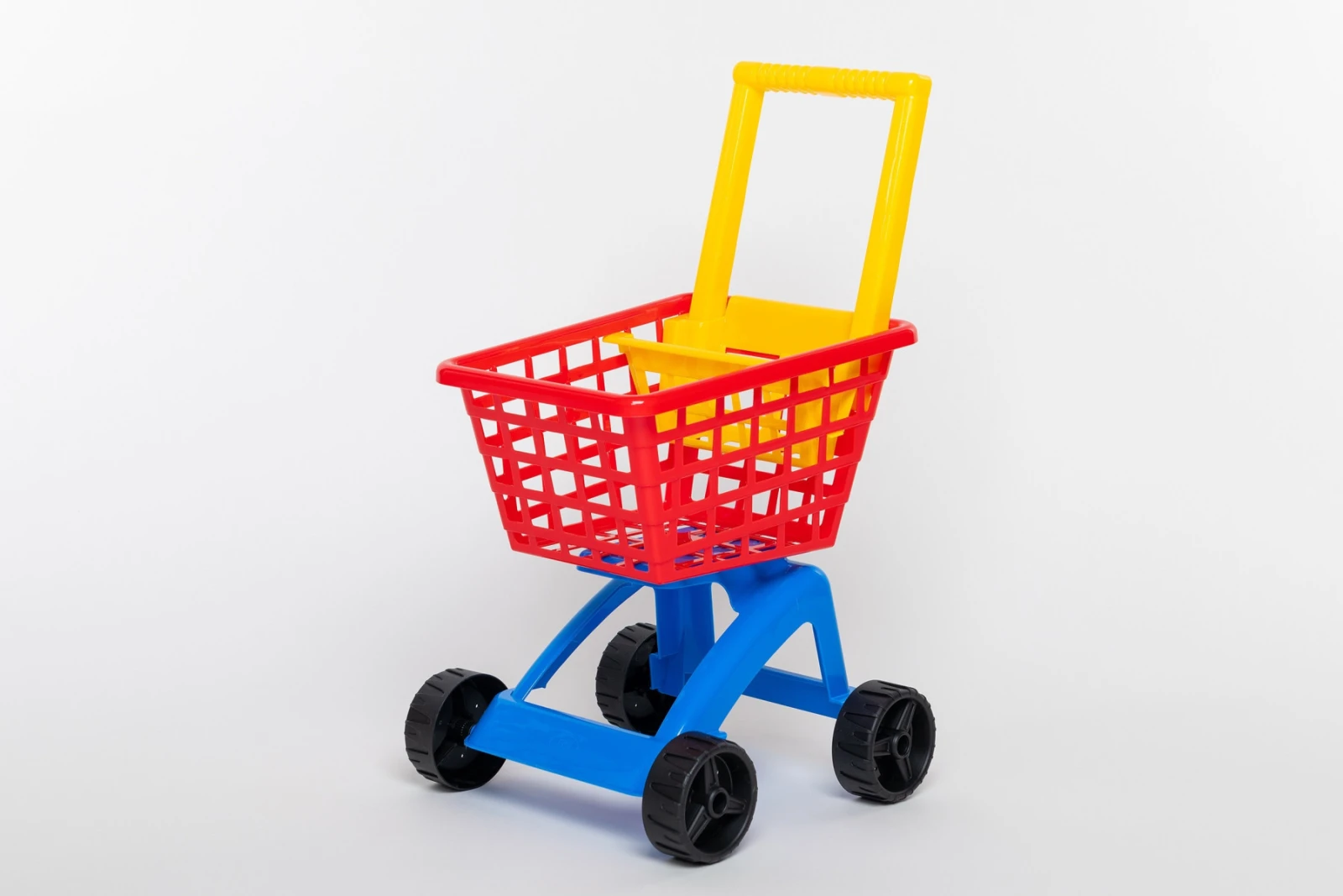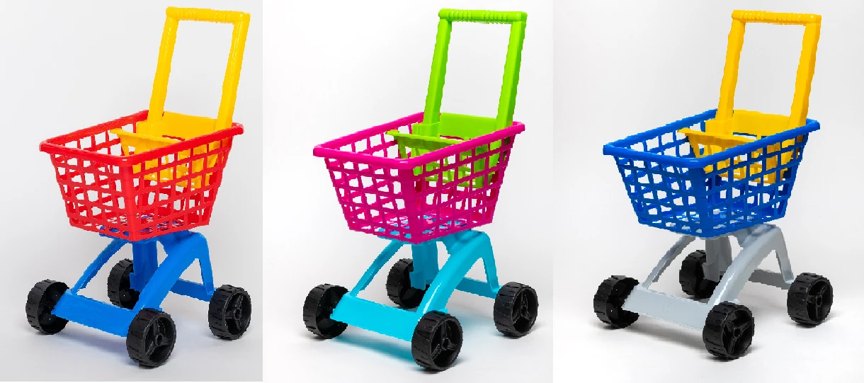 Děti si díky vozíku mohou hrát na obchod, nakupovat své hračky nebo potraviny z dětských setů a využít ho také jako přenosný úložný prostor během hry.