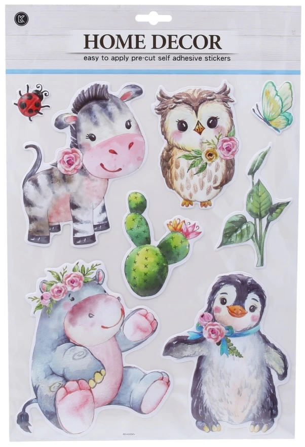Nálepky na zeď 41,5x28 cm zebra, hroch, tučňák, sova
