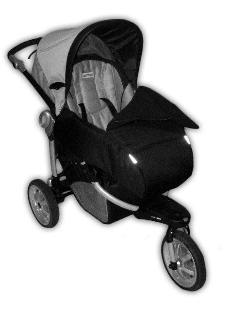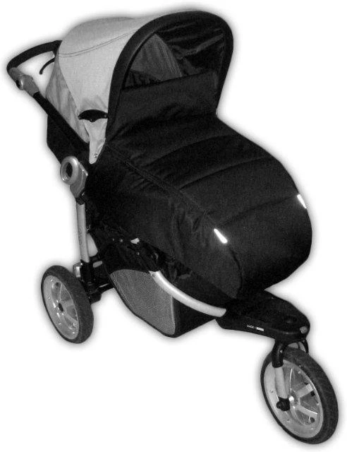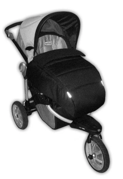 Ke konstrukci kočárku se připevňuje ve dvou místech gumou se sponou a poutkem se suchým zipem.