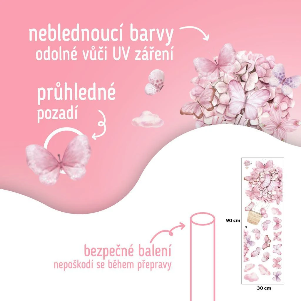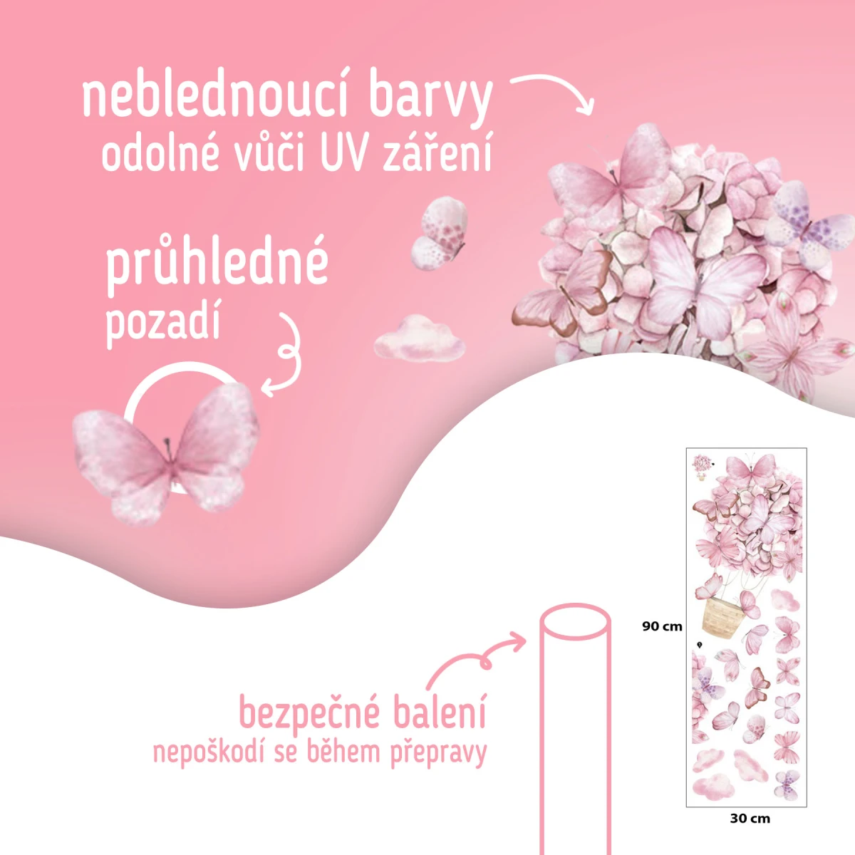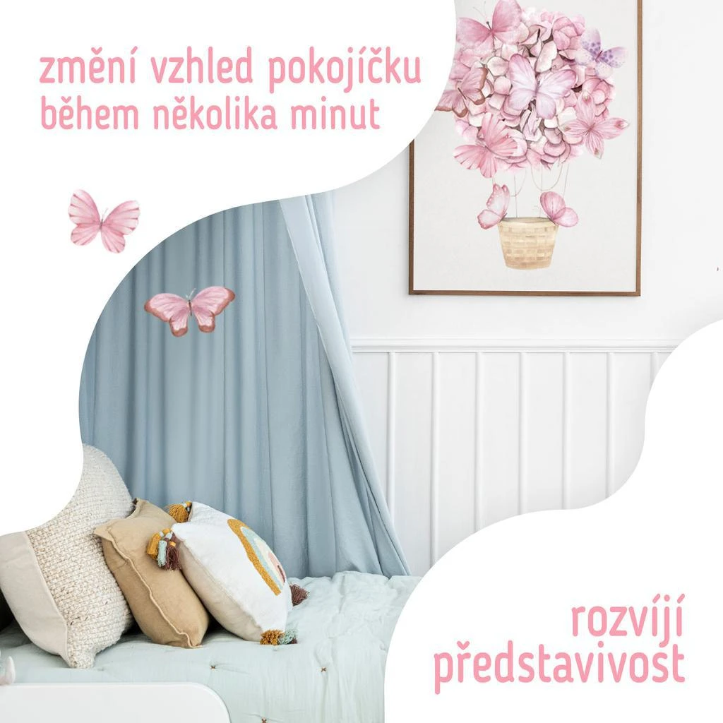 Nástěnné samolepky do dětského pokoje, Pink Butterflies Sipo