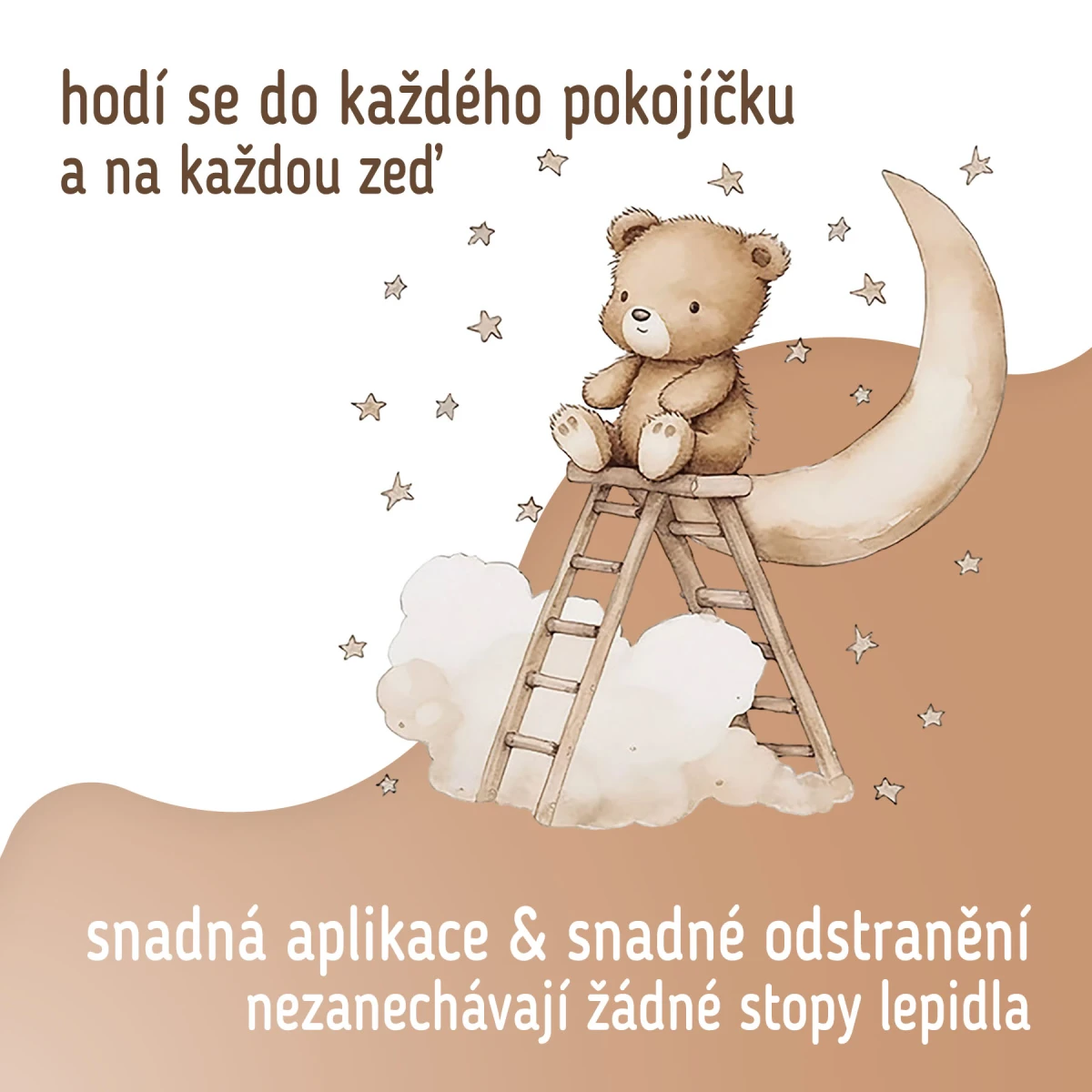 Samolepky na zeď se lepí pouze na hladký, čistý a suchý povrch. Doporučujeme samolepky lepit na důkladně natřenou a předem vymalovanou stěnu. V opačném případě, například na porézní, špinavé nebo mastné zdi, nemusí samolepky dosáhnout plné přilnavosti. Pokud byla na stěnu použita latexová barva - vzhledem k jejímu mastnému složení může být přilnavost samolepky slabší.