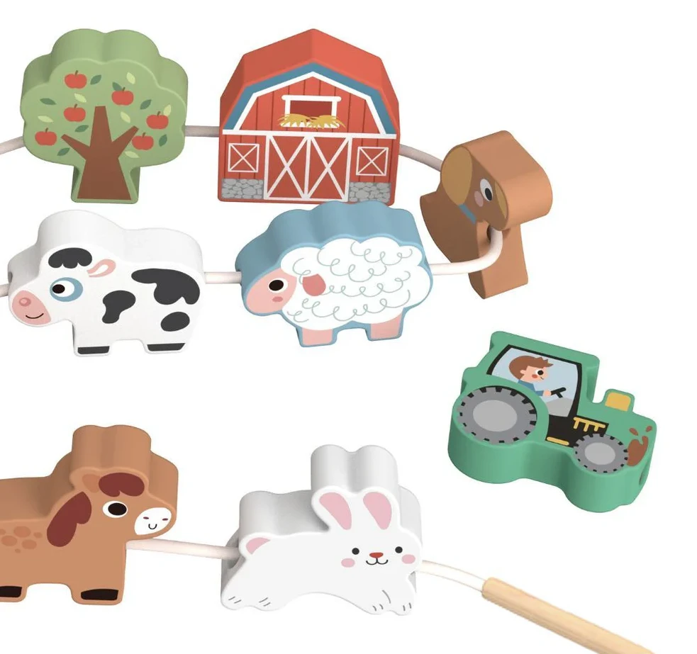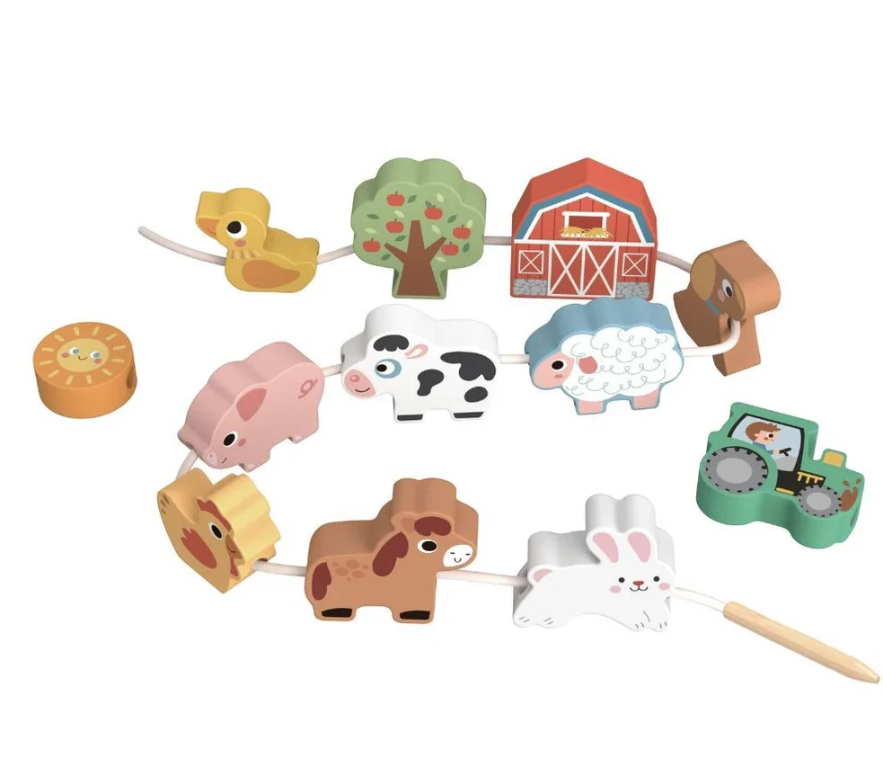 Vstupte do světa jemných barev a rozpoznávání zvířat! Tato sada dřevěných provázkových zvířat nabízí 13 dílků. Děti umí navlékat těla, třídit tvary, pojmenovávat zvířata a zároveň trénovat jemnou motoriku a soustředění.