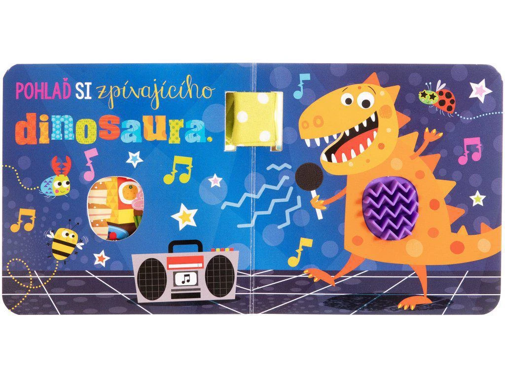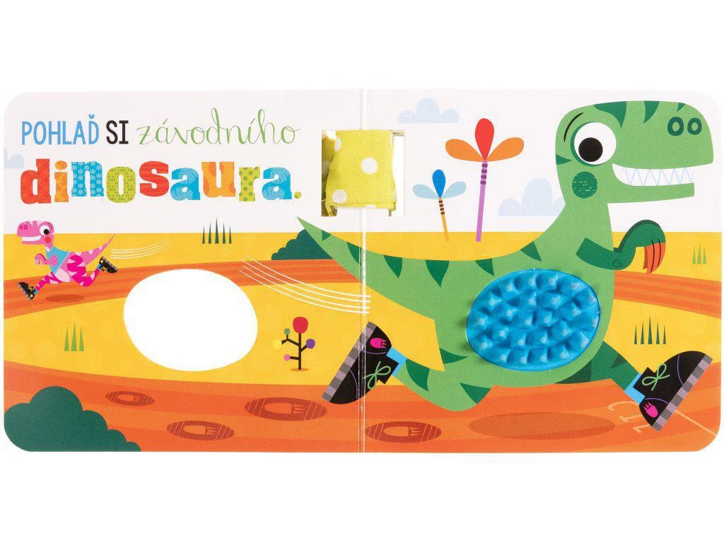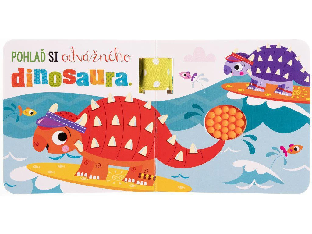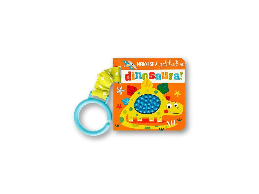 Přidejte se k hravým dinosaurům v tomto pestrobarevném leporelu se zavěšením na kočárek. Knížka pro nejmenší dětičky obsahuje hmatové prvky. Její zpracování a miniformát je ideální pro čtení a prohlížení na cestách. Pomocí praktického poutka a klipu můžete leporelo připevnit ke kočárku, k batohu, k židličce… Pevné stránky leporela s vystouplými silikonovými prvky pro rozvoj hmatu snadno zabaví ručky malých nenechavců.