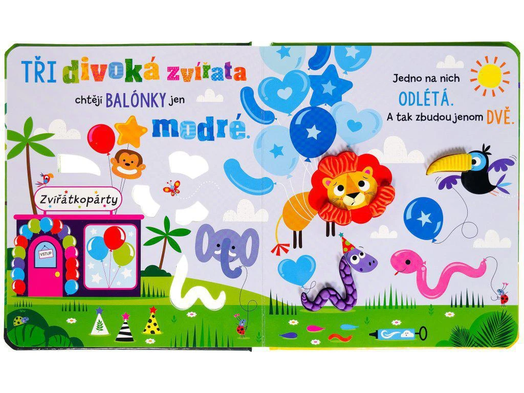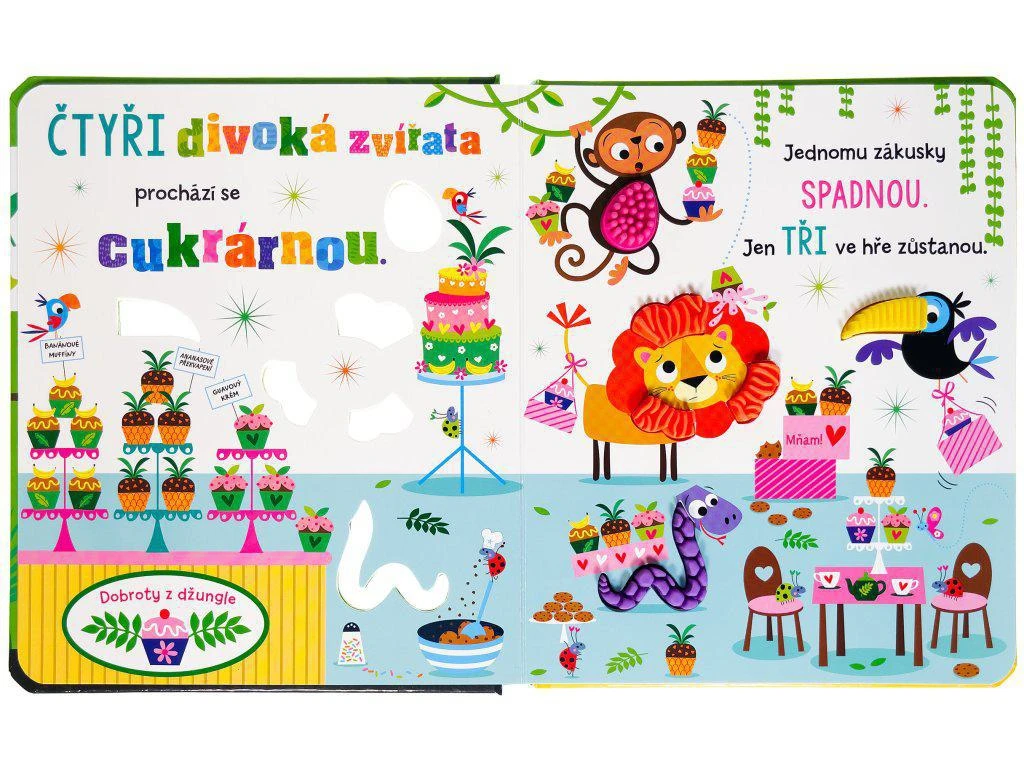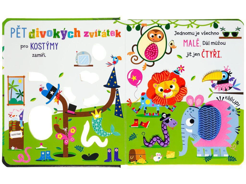 Pět divokých zvířat se rozhodlo uspořádat oslavu. Co všechno bude potřeba zařídit? Přidej se k nim a procvič si počítání od 5 do 1 s tím, jak divoká zvířata ubývají. Osahej si jejich povrch… pokud se odvážíš! Rozličné povrchy a struktury na stránkách pomohou dětem s rozvojem poznávání okolního světa pomocí více smyslů a zábavné a veselé ilustrace pobaví jak ty nejmenší, tak i nás, dospělé.