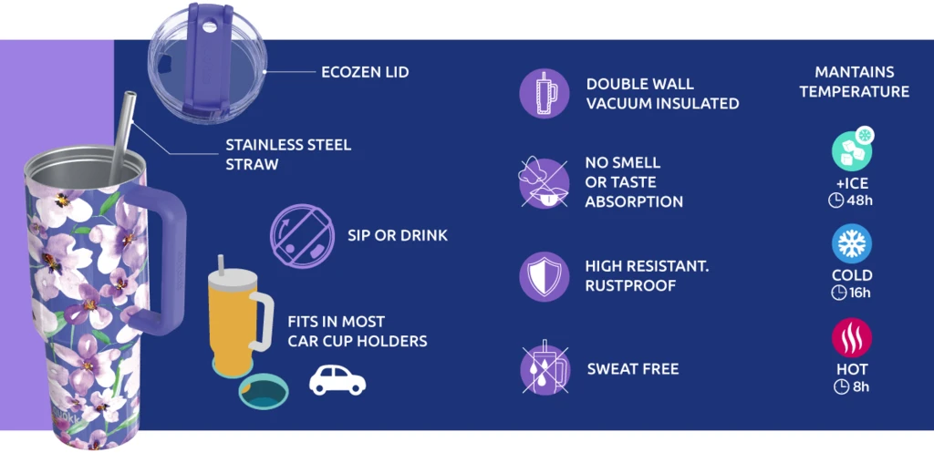 Tvar termohrnku je vhodný do většiny držáků nápojů v autě.