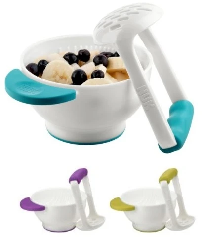 - miska a mačkátko pro snadnou přípravu malých porcí, miska s vnitřními vroubky zajistí snadné rozmačkání, proti-skluzová základna misky