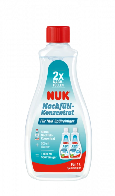 - Koncentrovaná náhradní náplň pro mycí prostředek na lahve a savičky NUK (500 ml koncentrátu náhradní náplně s 500 ml vody vytvoří 1000 ml mycího prostředku na lahve a savičky NUK)