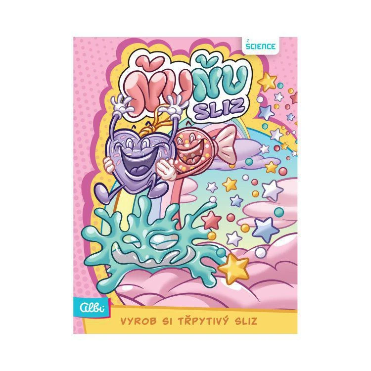 Zábavná experimentální sada z edice Albi Science, se kterou si děti od 6 let vytvoří vlastní sliz kombinací čirého slizu, barevné plastelíny, třpytek, flitrů a kuliček. Sada obsahuje: čirý sliz (60 g) - 3 sáčky, růžovou plastelínu tvrdnoucí na vzduchu (5 g) – 1 sáček, žlutou plastelínu tvrdnoucí na vzduchu (5 g) – 1 sáček, modrou plastelínu tvrdnoucí na vzduchu (5 g) – 1 sáček, přívěsek pro uchování plastelíny – 2 ks, pěnové kuličky (0,5 g) – 1 sáček, hvězdičky (1 g) – 1 sáček, třpytky (1 g) – 1 lahvičku, plastovou karabinu na přívěsek, železné očko na přívěsek – 1 ks a návod.