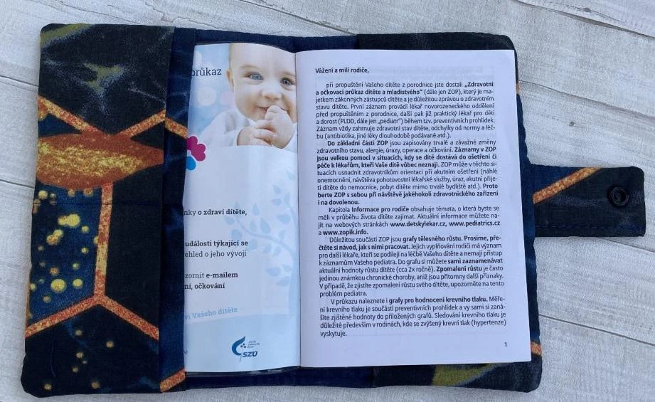 Vyhovuje standartní velikosti očkovacího průkazu.