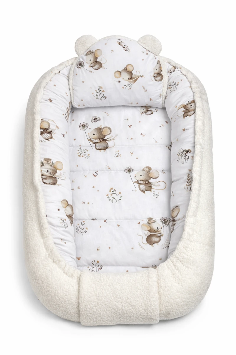 Oboustranné hnízdečko s polštářkem bavlna/boucle Malá myška smetanová Baby Nellys