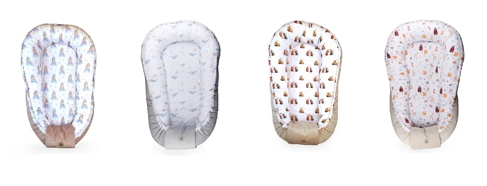 - v postýlce – hnízdečko poskytuje ochranu proti tvrdým příčkám postele a vysoké okraje hnízdečka usnadňují polohování dítěte na boku, což je velmi důležité, například když dítě ublinkává,