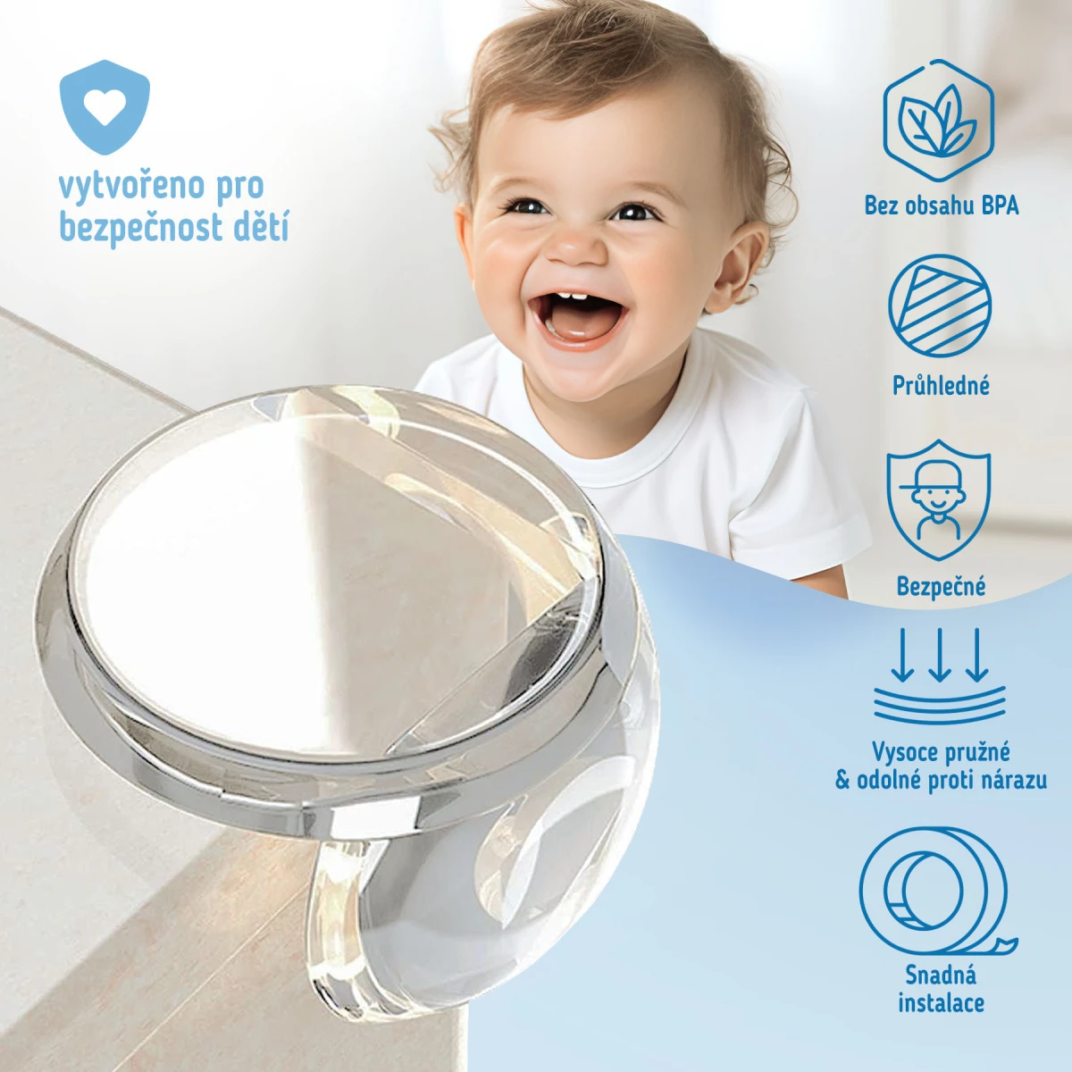 DOPLŇUJÍCÍ INFORMACE: Vždy postupujte podle přiložených pokynů. Pomůcka je určena pro domácí použití. Nepoužívejte výrobek jiným způsobem, než pro jaký byl určen a jaký je popsán v přiložených pokynech. Výrobce neodpovídá za škody vzniklé v důsledku použití výrobku v rozporu s jeho určením. Upozorňujeme, že některé děti mohou ochranu odstranit. Z tohoto důvodu doporučujeme pravidelně kontrolovat stav bezpečnostní pomůcky.