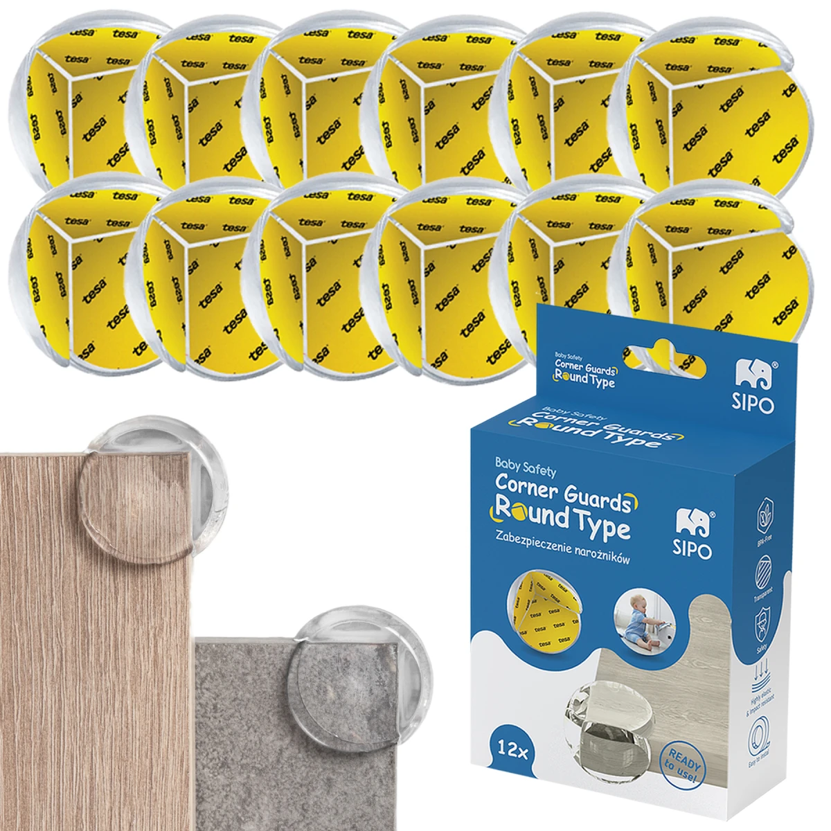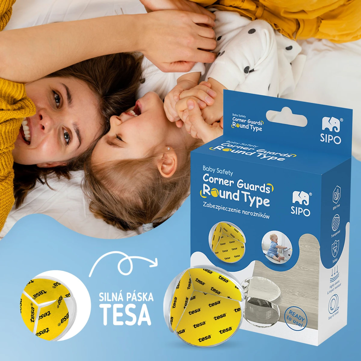 Oboustranná silná lepící páska, která je součástí balení, zajistí nejen jednoduchou montáž bez použití dalších nástrojů, ale také správné upevnění, aby ochrana po prvním kontaktu nespadla. Oválný tvar ochrání hranu stolu, takže rodič může v klidu sledovat, jak si děti hrají kolem.