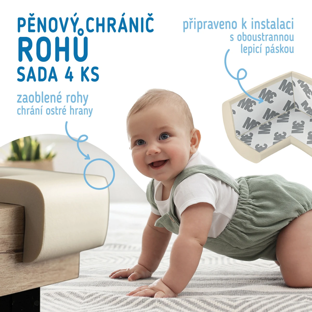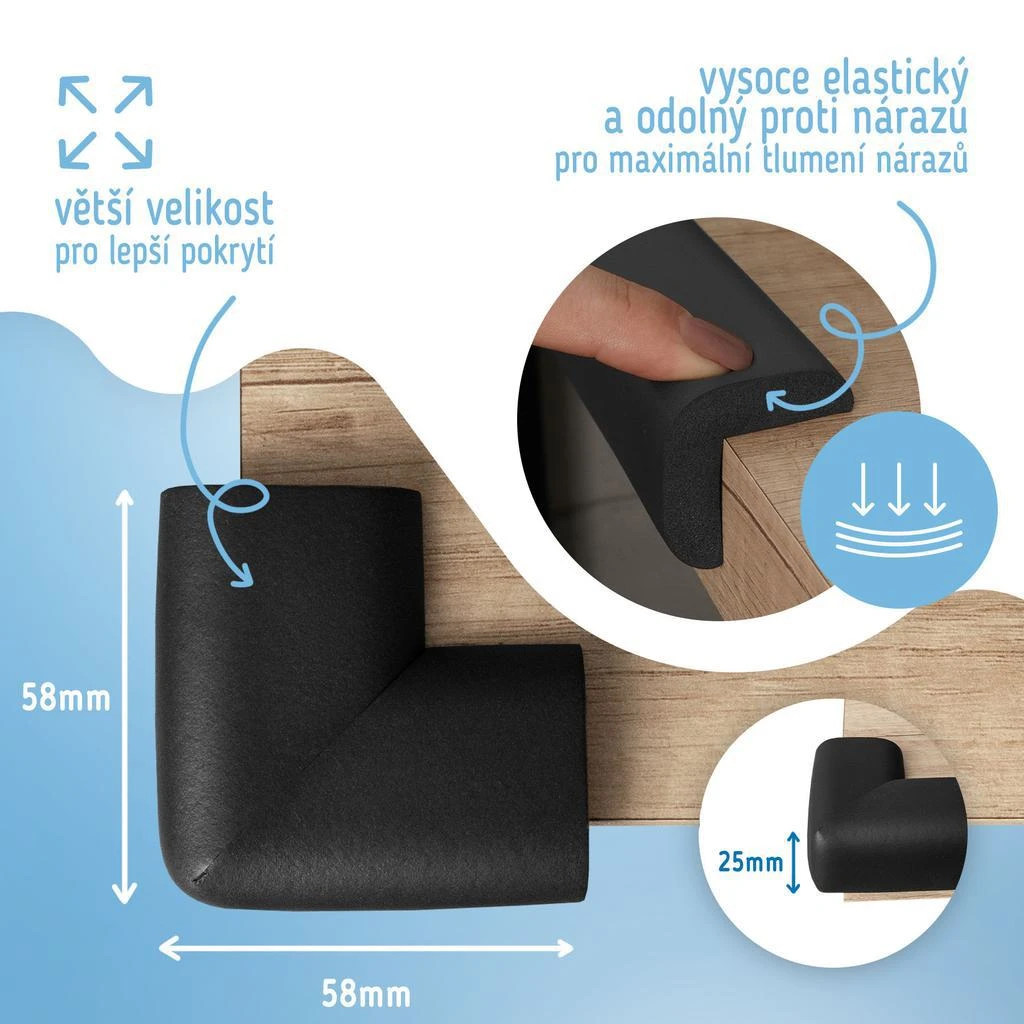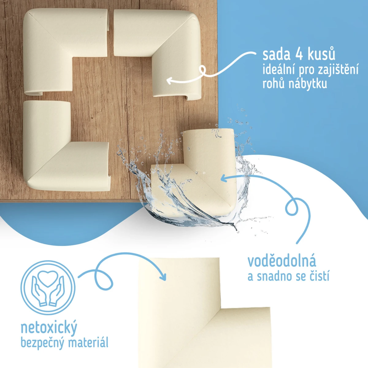 Ochranné rohy jsou široce používaný bezpečnostní prvek díky použitému materiálu a měkkosti. Lze je použít k ochraně desek stolů, skříní, schodů a všech dalších prvků, které mají ostré hrany a rohy a mohly by tak představovat bezpečnostní riziko pro vaše děti.