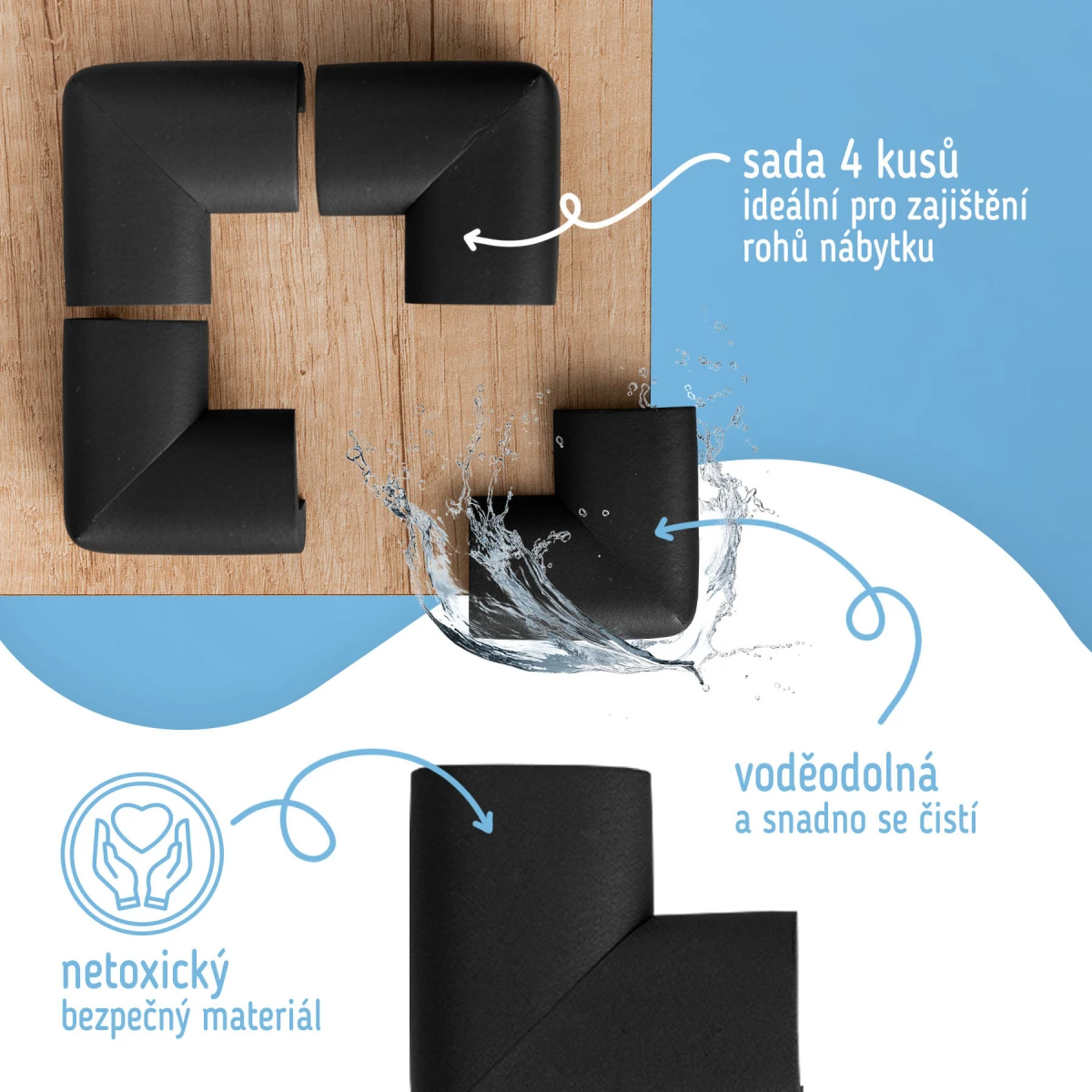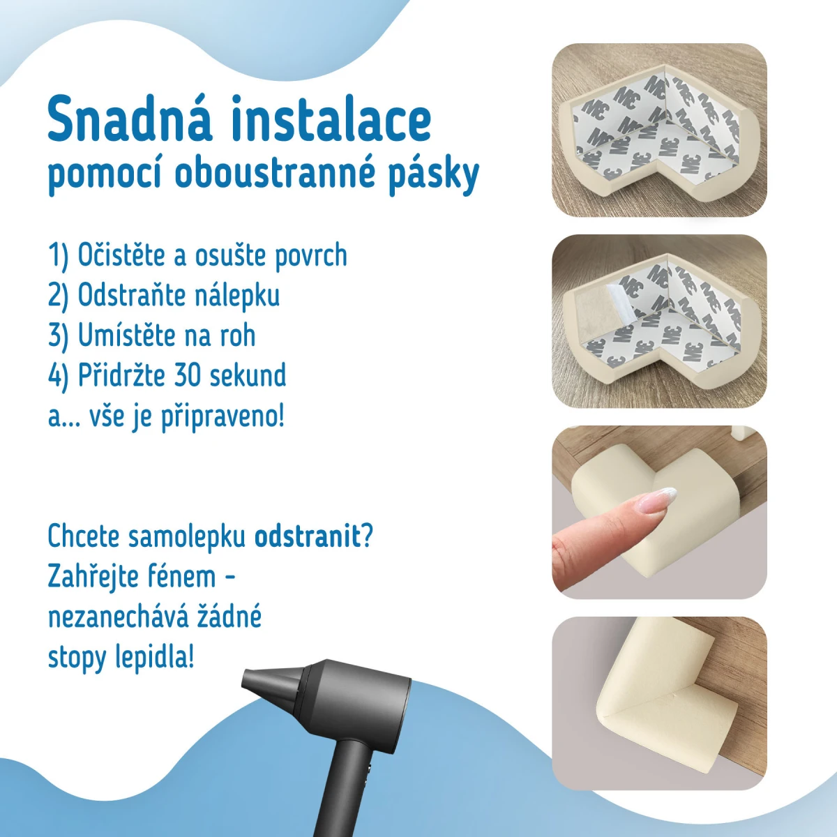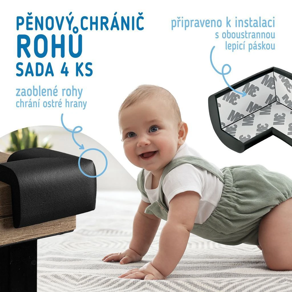 Ochranné rohy jsou široce používaný bezpečnostní prvek díky použitému materiálu a měkkosti. Lze je použít k ochraně desek stolů, skříní, schodů a všech dalších prvků, které mají ostré hrany a rohy a mohly by tak představovat bezpečnostní riziko pro vaše děti.