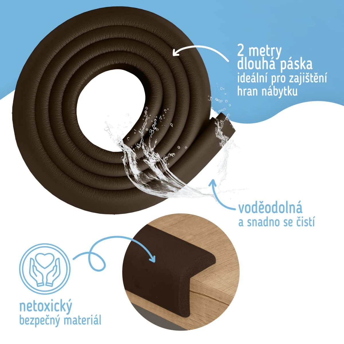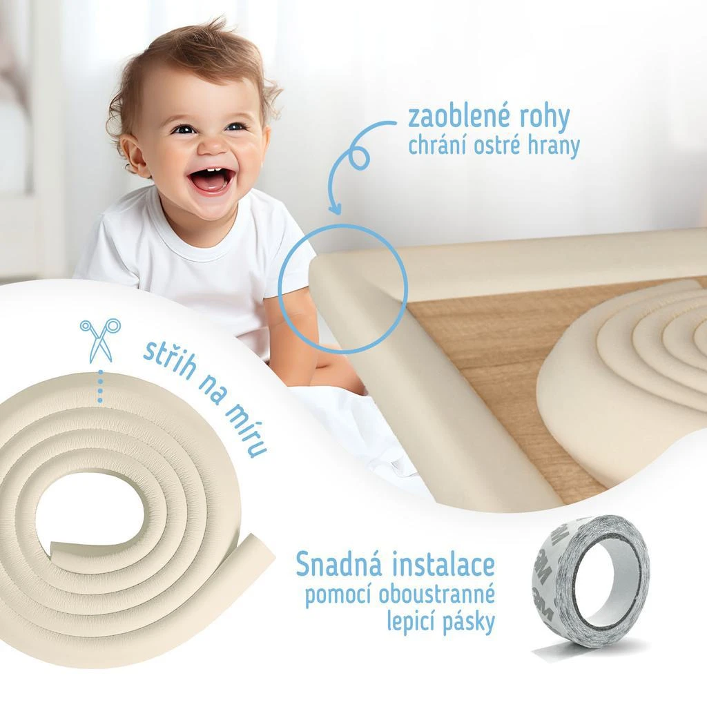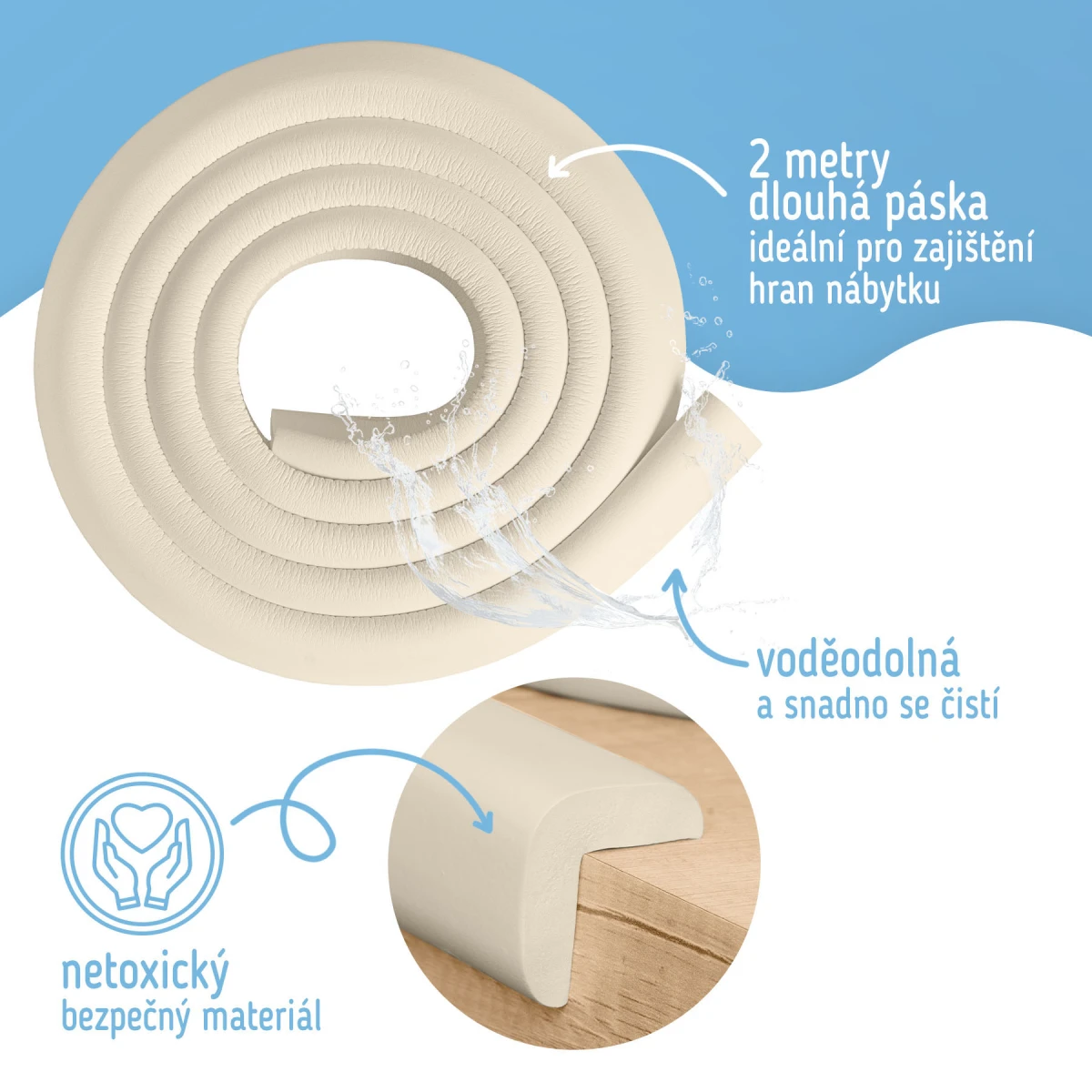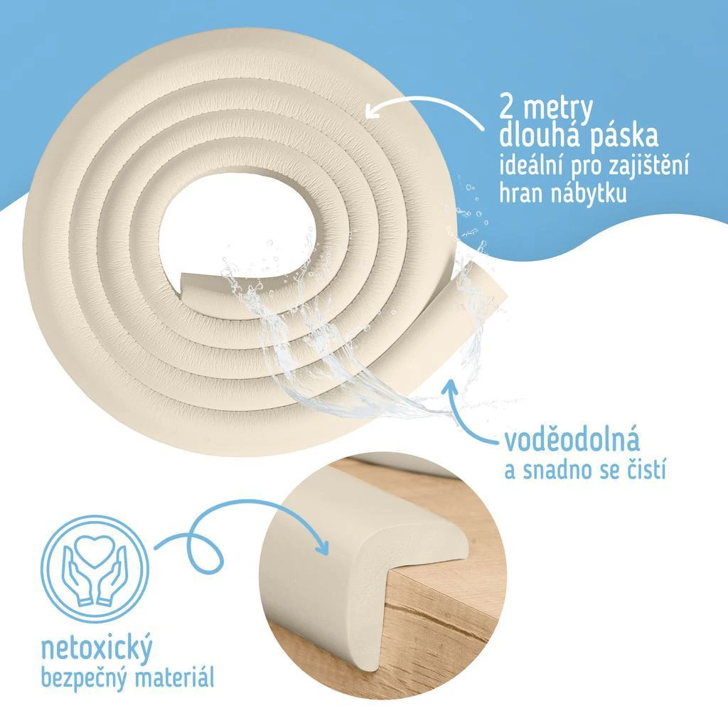 Ochranná páska je široce používaný bezpečnostní prvek díky materiálu a měkkosti. Lze ji použít k ochraně desek stolů, skříní, schodů a všech dalších prvků, které mají ostré hrany a mohly by tak představovat bezpečnostní riziko pro vaše děti.
