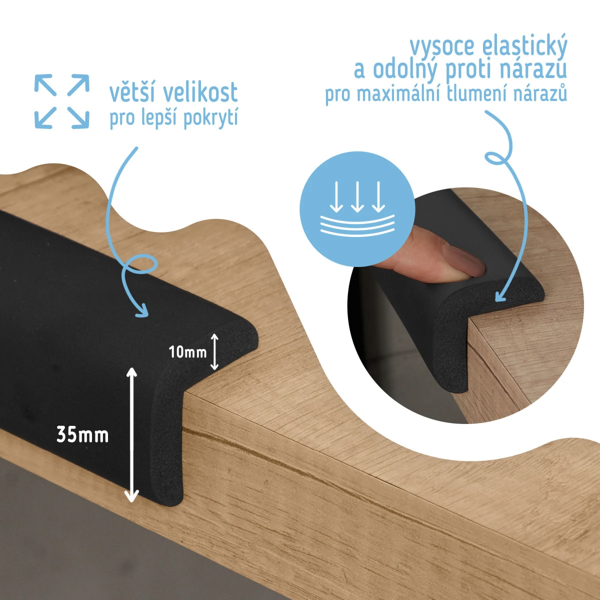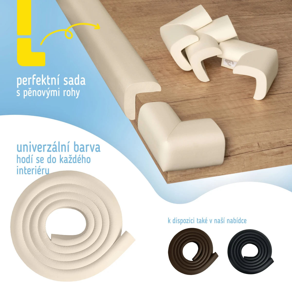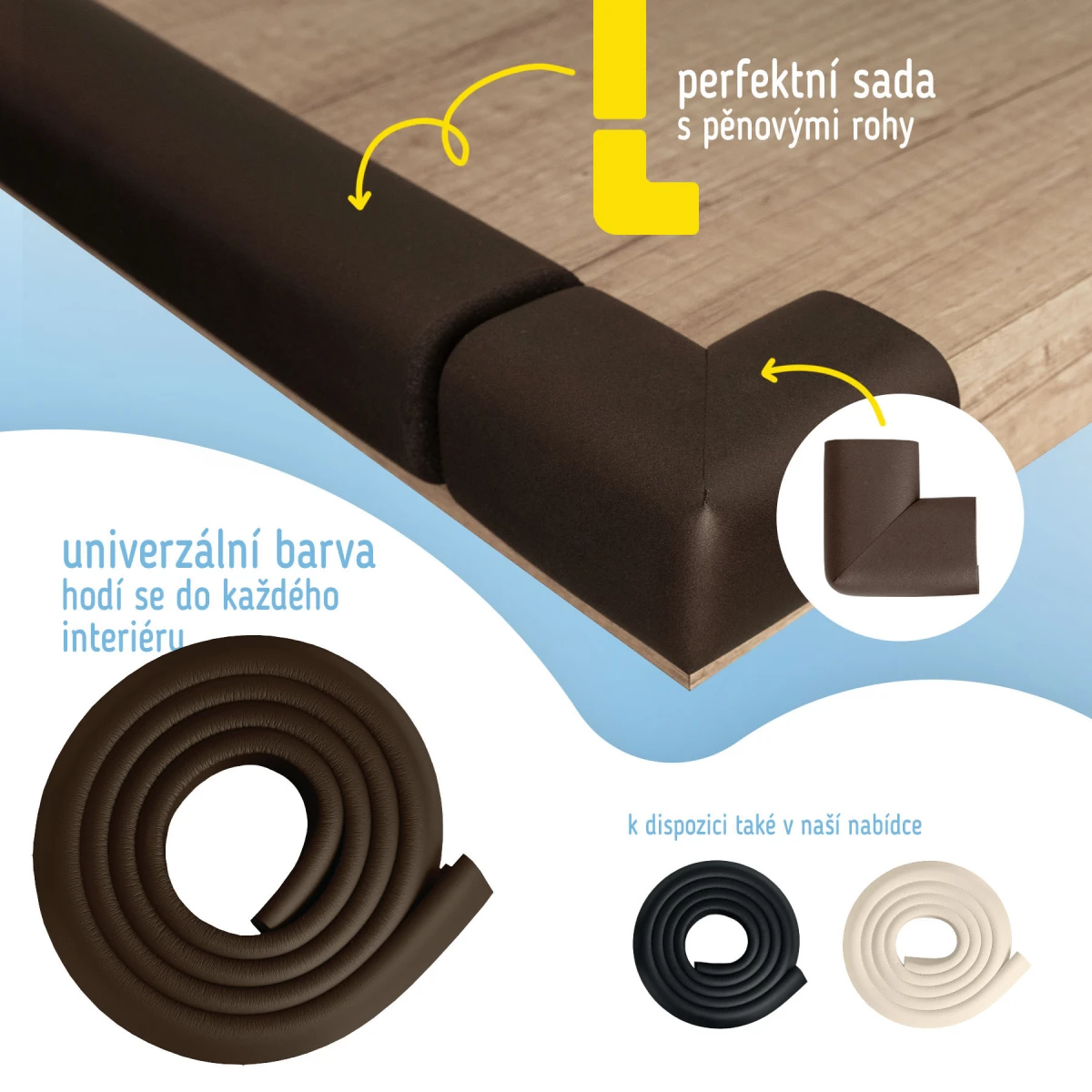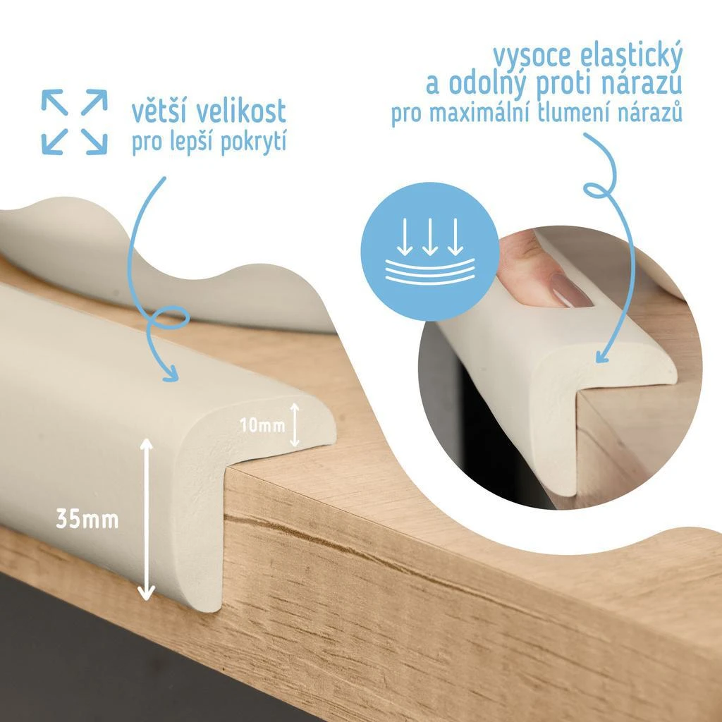 Ochranná páska je široce používaný bezpečnostní prvek díky materiálu a měkkosti. Lze ji použít k ochraně desek stolů, skříní, schodů a všech dalších prvků, které mají ostré hrany a mohly by tak představovat bezpečnostní riziko pro vaše děti.