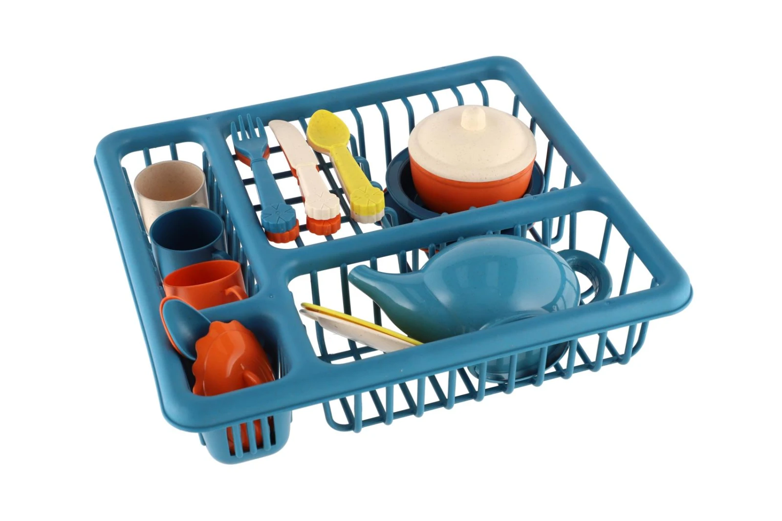 Odkapávač na nádobí s bohatým příslušenstvím umožní dětem napodobovat každodenní činnosti a hrát si na vaření i mytí nádobí.