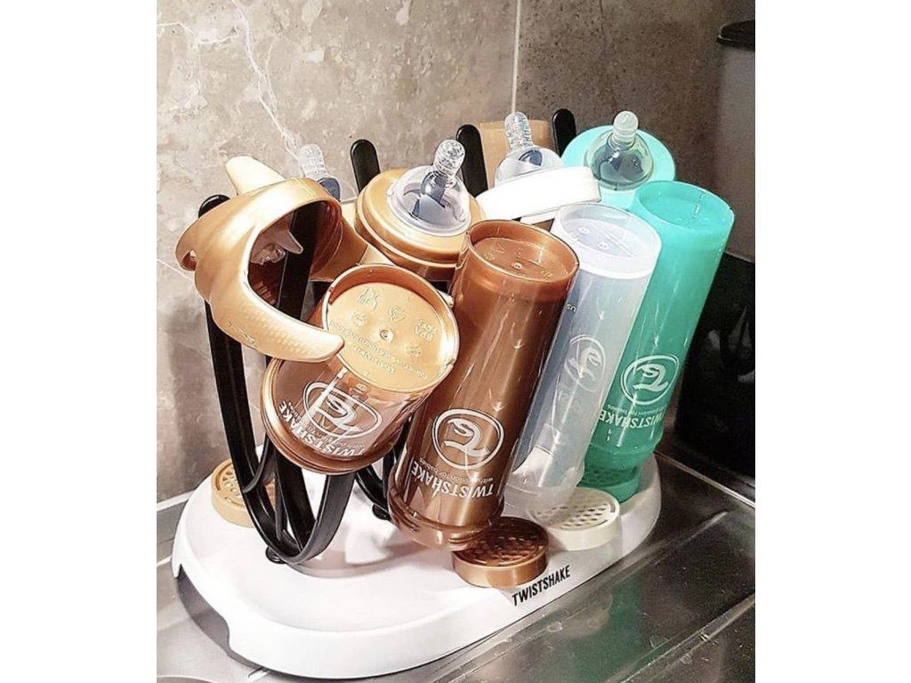 Nyní Twistshake nabízí vlastní odkapávací stojan pro vaše láhve a nádoby. Hluboké oválné dno odkapávače zabraňuje úniku vody a zajišťuje, že kuchyně zůstane čistá a uklizená. Odnímatelná ramena umožňují rovnoměrné rozmístění vašich láhví a jejich součástí pro rychlejší usušení.