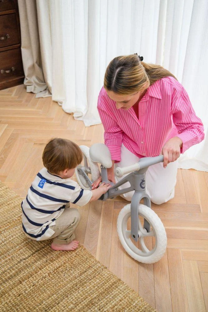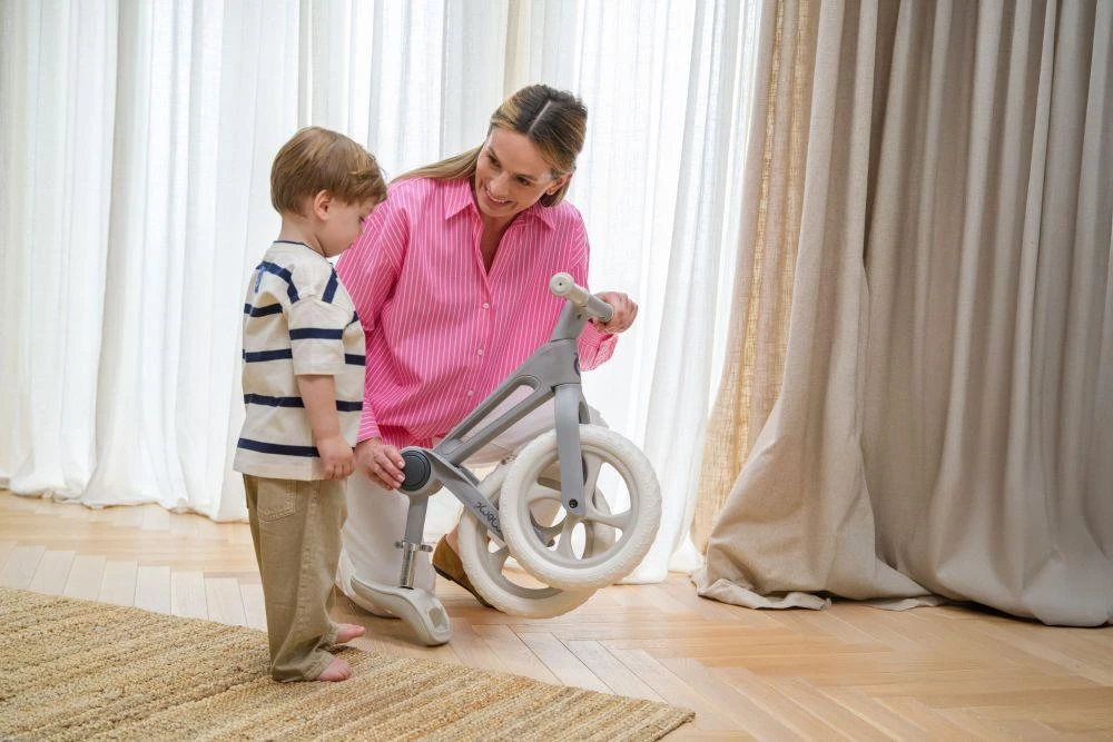 Lehký, ale odolný rám z nylonu a kvalitní pěnová kola EVA zajišťují hladkou jízdu a snadnou manipulaci. Sedlo lze nastavit bez použití nářadí, takže odrážedlo snadno přizpůsobíte výšce dítěte. Ergonomické protiskluzové rukojeti a bezpečný design bez zámku řízení podporují pohodlnou a bezpečnou jízdu.