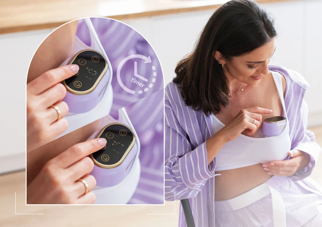 Přenosná odsávačka pastelové barvy je naprosto bezdrátová, má přehledný dotykový ovládací panel a velký objem, kam se vejde až 210 ml mléka. Odsávačka mléka funguje na základě tří fází s 8 úrovněmi nastavení. Má anatomický prsní štít ve tvaru prsu, který lze zmenšit z 24 mm na 20 mm.