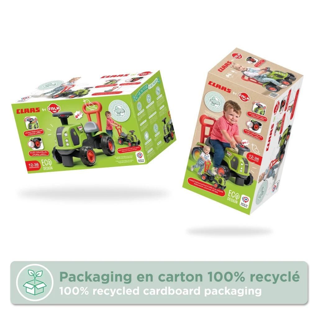 Traktor Falk Baby Claas je ideálním společníkem pro děti od 2 let. Je navržen tak, aby podporoval rozvoj motorických dovedností a rovnováhy při zábavě v interiéru i exteriéru. Tichá kola: Speciálně navržená kola pro tichý pohyb, ideální pro hraní doma i venku. Traktor je vybaven směrovým volantem pro snadné ovládání. Klakson pro ještě větší zábavu při jízdě.Široká stabilní kola – bezpečná jízda i pro začínající jezdce. Vyrobeno ve Francii z kvalitních recyklovaných plastů.