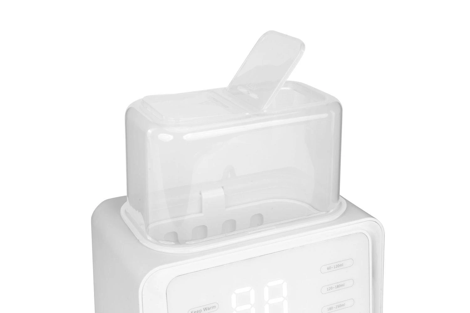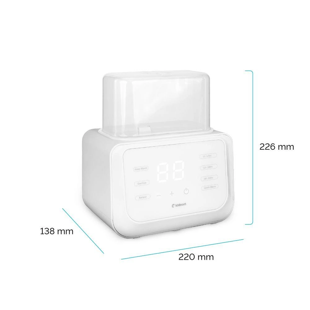 Praktický a bezpečný ohřívač určený pro rodiče, kteří chtějí rychle a rovnoměrně ohřát mléko nebo jídlo pro své dítě. Díky prostorné komoře (15 cm x 8 cm prostor pro lahve) můžete pohodlně ohřát dvě lahve nebo lahev a sklenici . Vejde se do něj lahve o objemu 60 ml až 250 ml, vyrobené ze skla, plastu nebo silikonu. Díky otevíracímu víku je vhodný i pro vysoké lahve. Pohodlné pro jedno nebo dvě děti, na den i na noc.