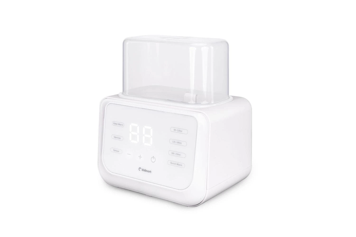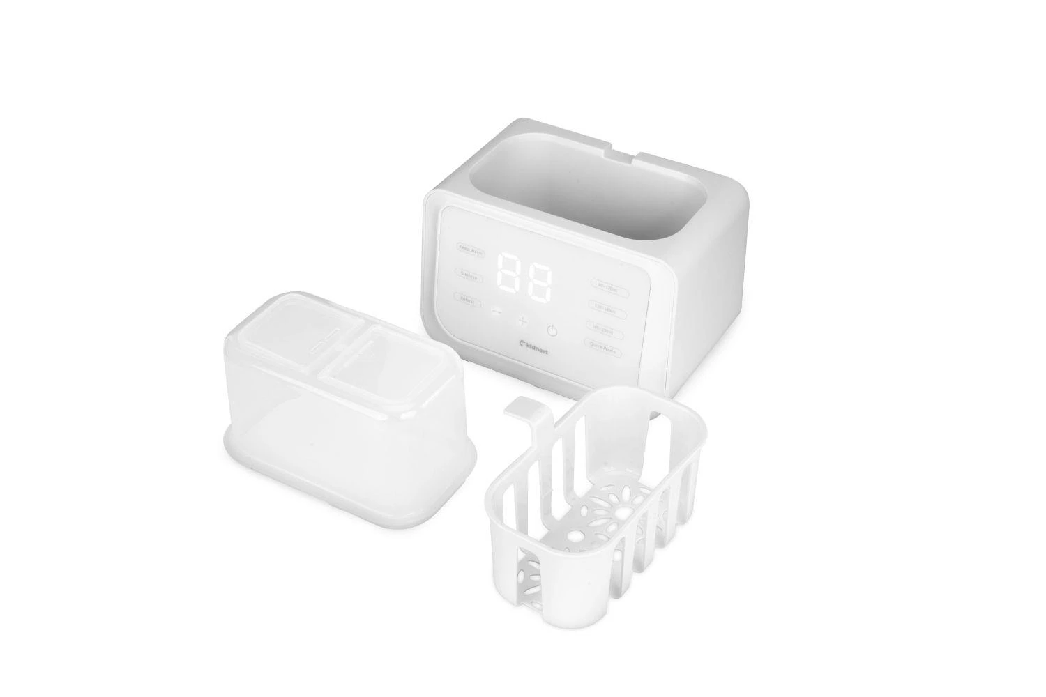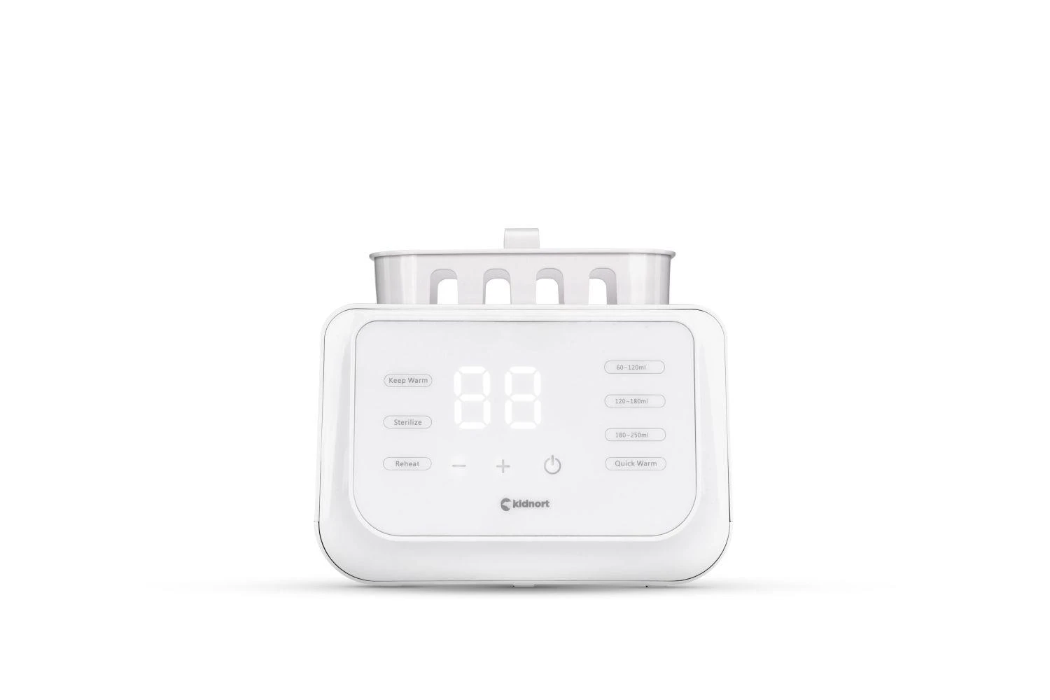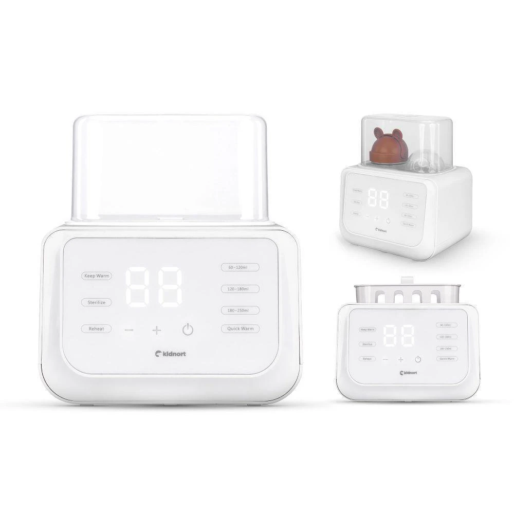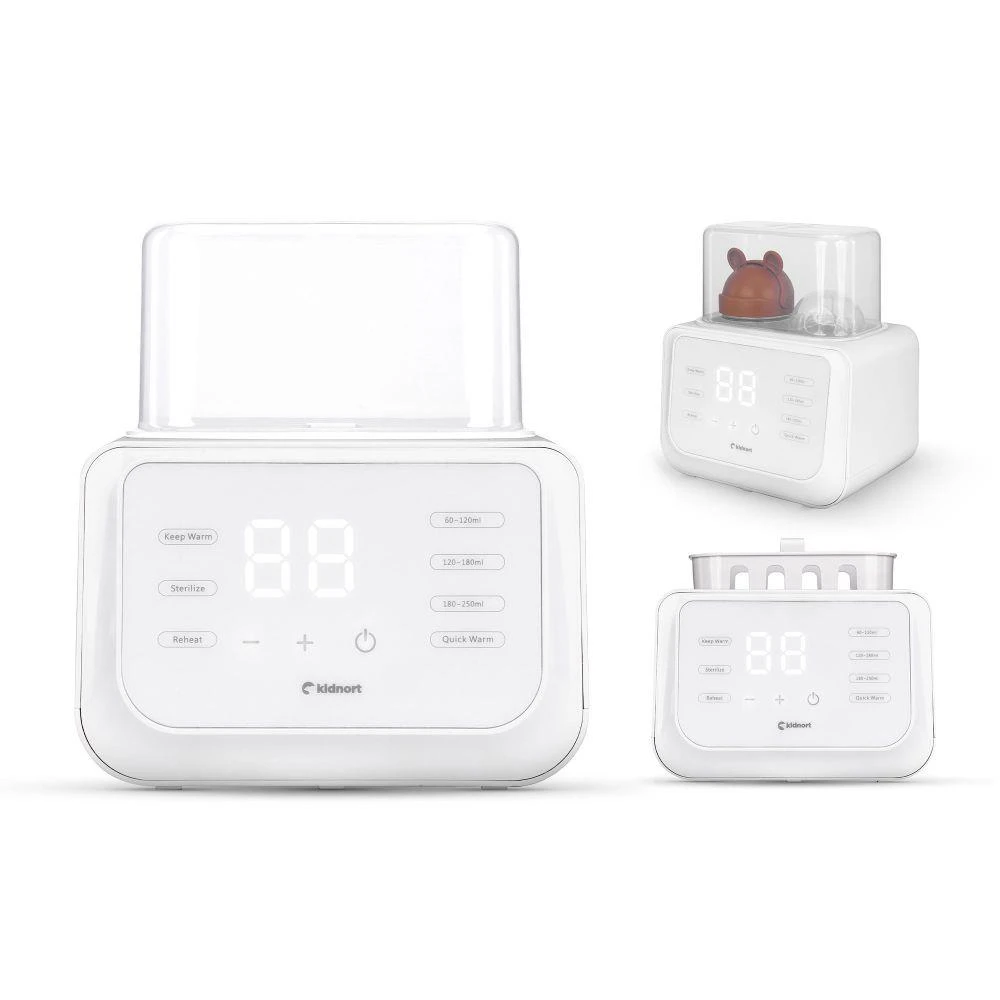 Funkce sterilizace při 90 °C umožňuje rychle a efektivně odstranit bakterie z lahviček, kousátek, dudlíků, částí odsávačky mléka a dalšího dětského příslušenství. Stačí přidat 50–70 ml vody, vložit košík a umístit do něj lahvičku nebo jiné příslušenství, vše přikrýt víčkem a zapnout režim sterilizace. Košík umožňuje pohodlné vyjímání lahviček nebo příslušenství. Toto praktické řešení vám dává jistotu, že vše, co přijde do styku s dětskou výživou, je hygienicky čisté a bezpečné.