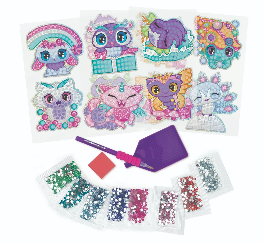 Sada obsahuje aplikátor kamínků, 12 samolepek, 1480 kamínků, praktický box na jejich uložení a barevný návod pro snadné tvoření. Skvělá aktivita, která podporuje jemnou motoriku, kreativitu i trpělivost.
