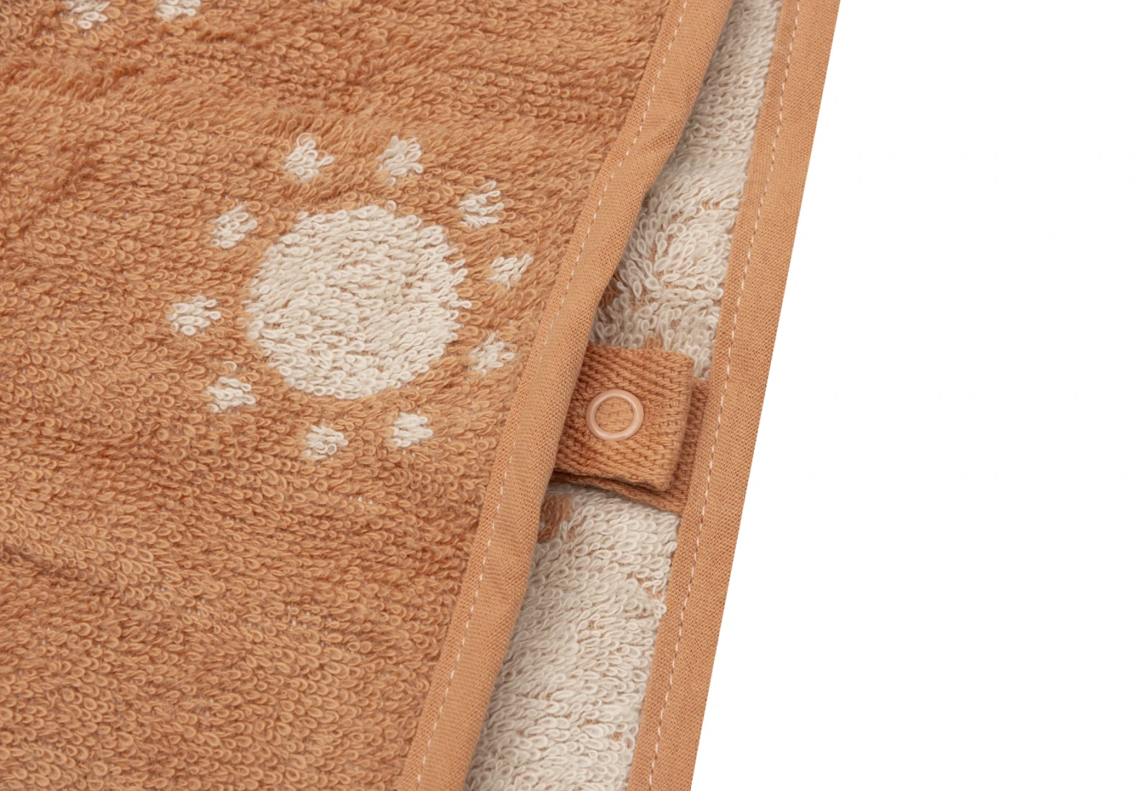 Měkká oboustranná froté osuška v podobě ponča s kapucí je ideální pro snadné a rychlé osušení vašeho aktivního batolete po koupeli nebo plavání. Zapínání na patentku na boku osušku bezpečně drží na místě, i když dítě chodí nebo si hraje. Ideální pro použití doma, na pláži i u bazénu!