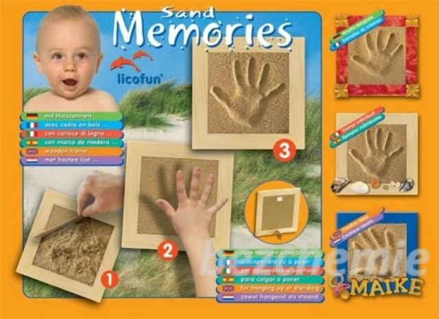 Krásná památka - otisk nožičky nebo ručičky vašeho děťátka v písku v rámečku s přírodního materiálu. Balení obsahuje: jednoduchý dřevěný rám, písek, lepidlo na písek, dřevěná špachtle, úchyt, dřevěná tyč k postavení. Materiál k dotvoření rámu není součástí. Kompletní vymalování nebo polepení rámu je nejlepší provést před zaplněním rámu pískem.