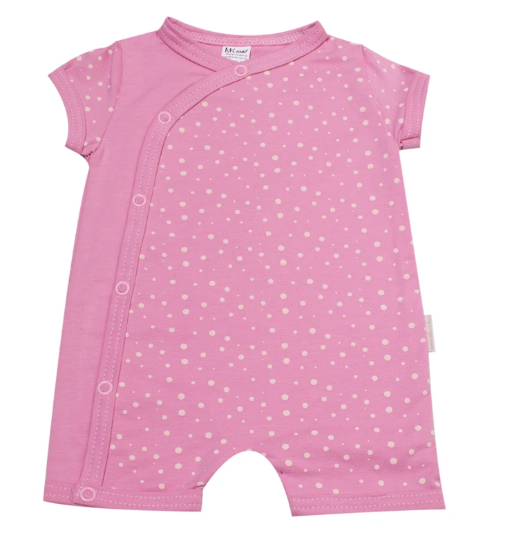Overal letní kojenecký s krátkým rukávem a nohavicemi s potiskem puntíků.