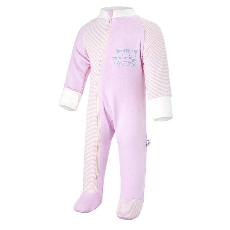 Pohodlný dětský overal je střižen ze slušivé kombinace dvou vzhledově rozdílných materiálů - jedné barvy a módních pruhů. Overal má dupačkové nohavice a u krku je zakončen stojáčkem. Rukávy jsou dlouhé a mají široké náplety, které můžete v případě potřeby ohrnout a upravit tak délku rukávů podle aktuální potřeby. Overal se zapíná na dlouhý zip, který usnadní oblékání. Po zapnutí lze jezdec zipu schovat do speciální krytky pod bradou, a zabránit tak otlačení brady. Přední stranu overalu zdobí potisk s motivem zvířátka. Overal má uvnitř nažehlené etikety, které netlačí a nadráždí jemnou dětskou pokožku.