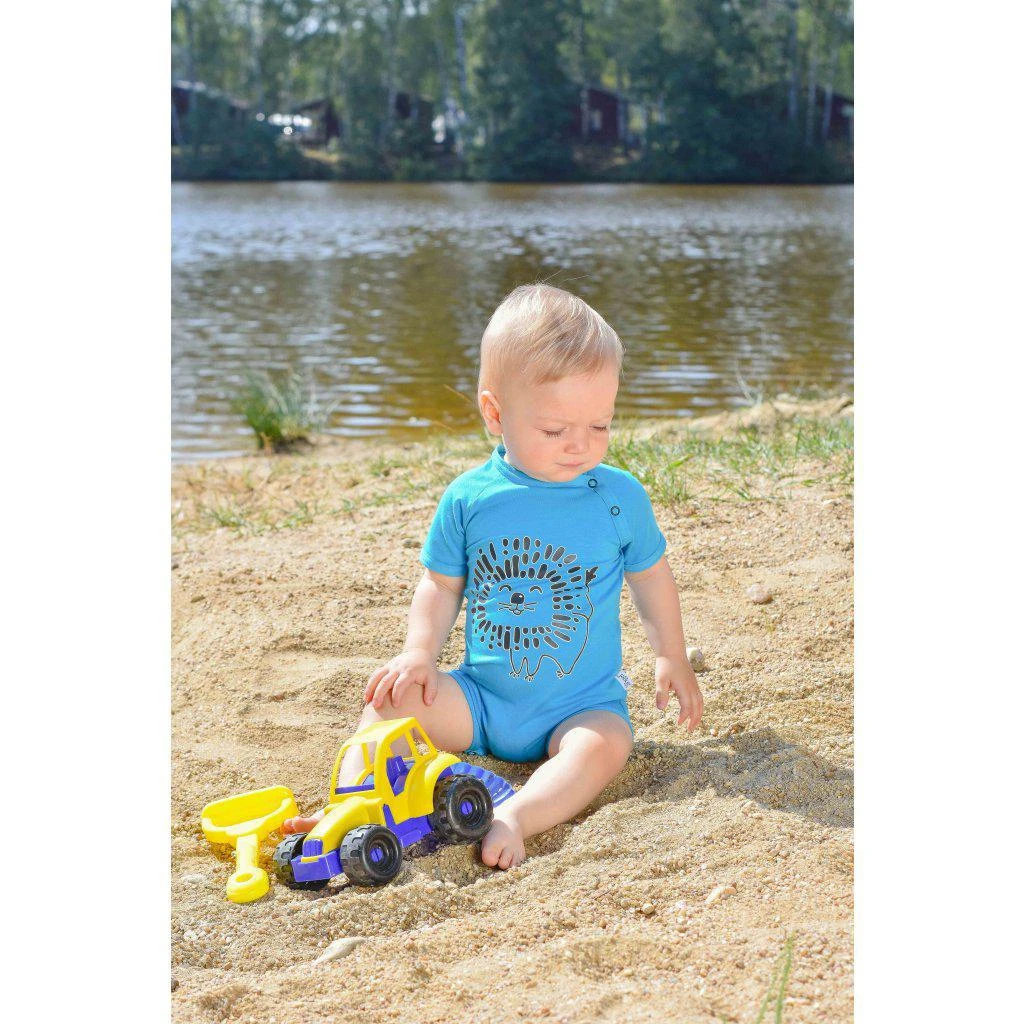 Díky pružnosti materiálu overal krásně přiléhá na tělíčko a nikde neodstává. Zapíná se na druky, které jsou umístněny na jedné straně u krčku a v rozkroku pro snadné přebalování.