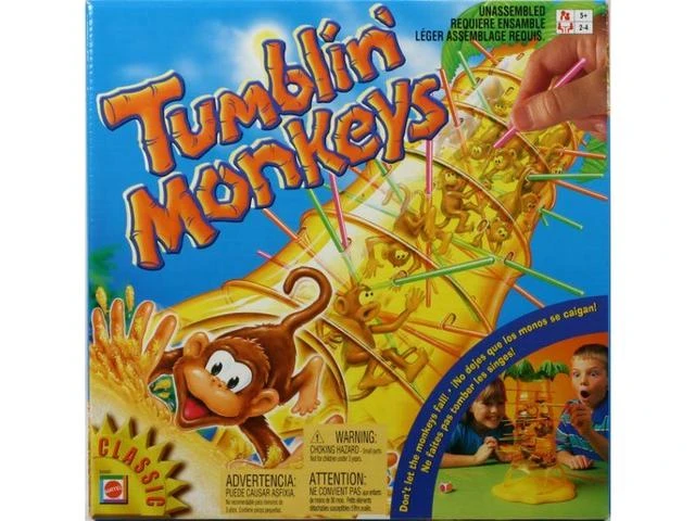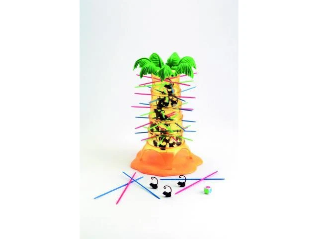 Stačí jen chybný tah a opička spadne. Pustťe opičky dírou v koruně průhledné hrací palmy, ale až po té, co do každého otvoru v kmeni palmy vložíte barevné tyčinky. Každý hráč hodí barevnou kostkou a vytáhne tyčinku té barvy, která padne na kostce.