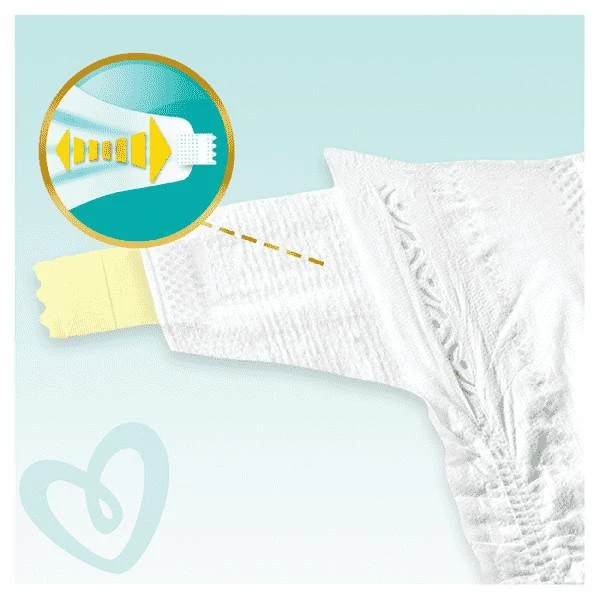 Plenky Pampers jsou navrženy tak, aby se přizpůsobily tvaru tělíčka dítěte a dokonale mu padly pro pocit jemnosti. Při výměně plenky se nemusí zahýbat pas ani upravovat manžetky kolem nožiček.