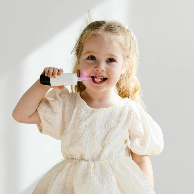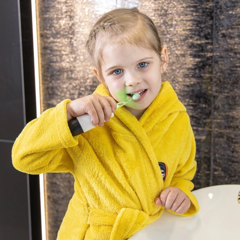 - čistící hlava s měkkými štětinkami je vyrobena z DuPont materiálu, který je pevný a odolný proti opotřebení, má zaoblené konce, chrání dásně dítěte a účinně čistí zuby