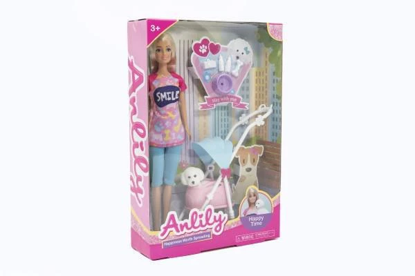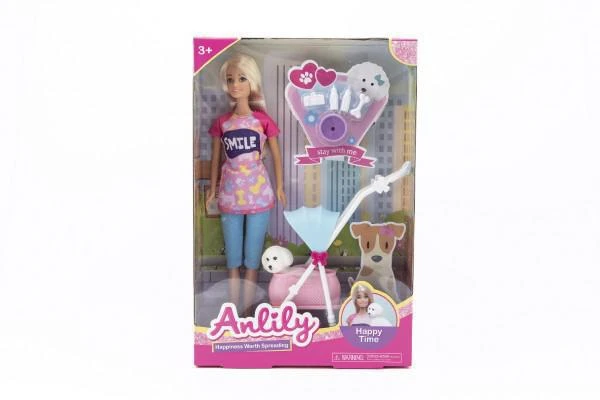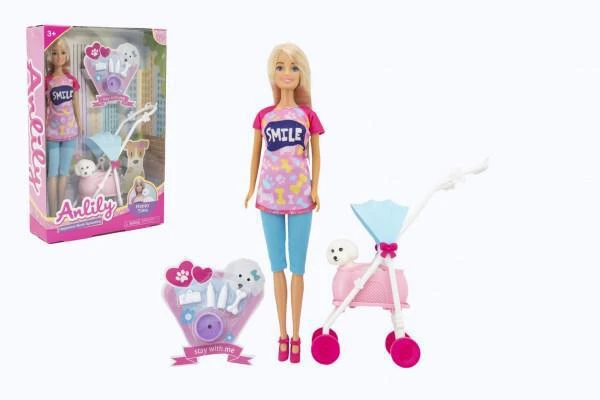 Panenka Anlily kloubová 30 cm s mazlíčkem v kočárku s doplňky