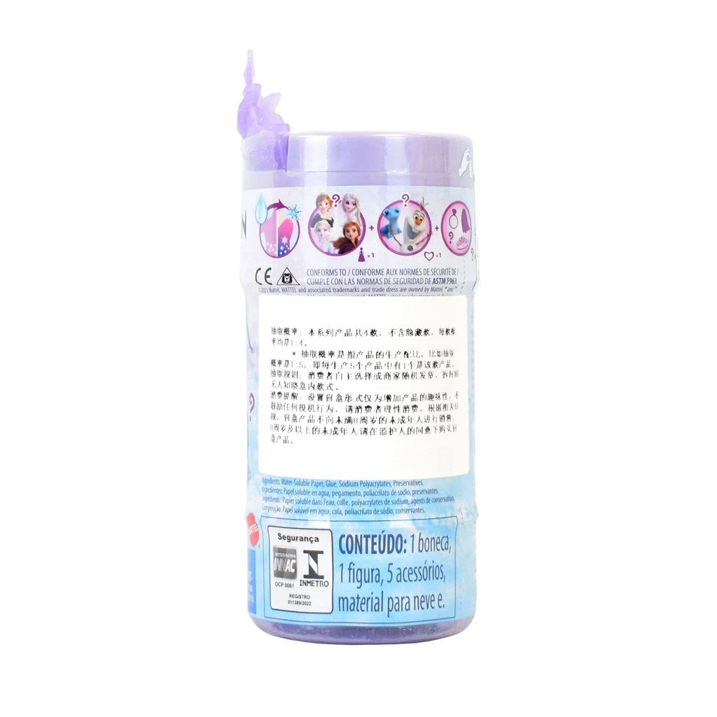 Každá panenka je ukrytá pod tajemnou vrstvou, která čeká na své odhalení. Stačí naplnit tubu vodou, vložit panenku dovnitř a zatřepat – aktivuje se sněhová směs, která se rozvíří jako pravá zimní bouře a postupně odhalí, zda se uvnitř skrývá Elsa nebo Anna.