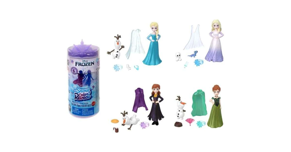 Kromě panenky najdete v balení i roztomilého kamaráda (například Olafa či Brunimu), dále 4 tematické doplňky a prstýnek pro dítě.