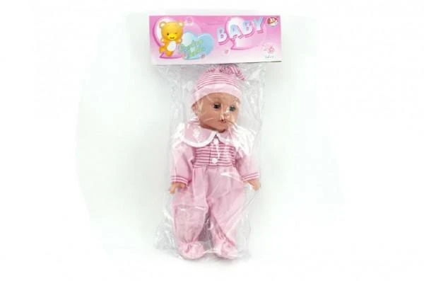 Panenka/miminko mrkací měkké tělo plast 35cm na baterie se zvukem v sáčku