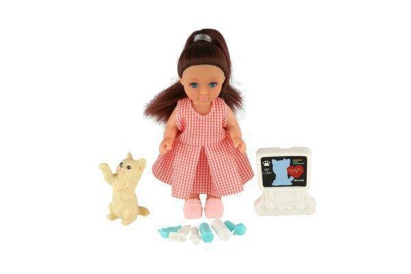 Panenka veterinářka plast pevné tělo s doplňky, 2 druhy, 11 cm